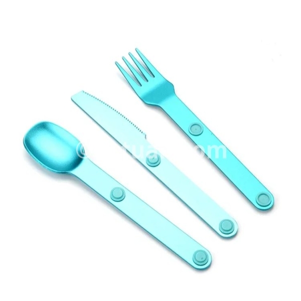 Features: Made of high quality pure aluminum, durable and healthy for daily use, dishwasher safe. The utensils set incluede dinner knife, forks, spoons. Ultra light material magnetic suction combination, lightweight and portable. Suitable for taveling, working, school, workplace, eating on the go, picnic, camping, etc. This reusable cutlery travel set is also a great gift for kids, friend, working husband and wife, teachers, etc. Specifications: Material: Pure aluminum Color: Dark blue,green,gray,light blue,orange Size: 18*3.6cm Package contains: 1 * Knife 1 * Fork 1 * Spoon Note: Please allow slight dimension difference due to different manual measurement. Please note that slight color difference should be acceptable due to the light and screen.