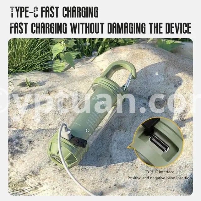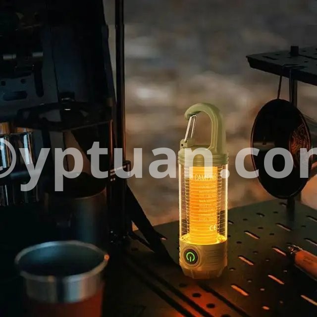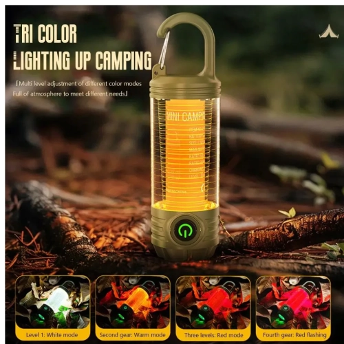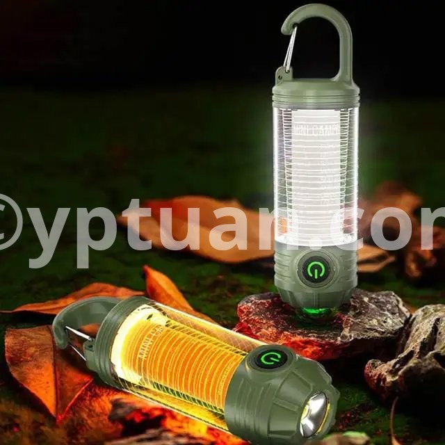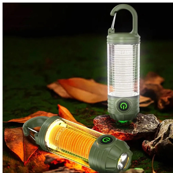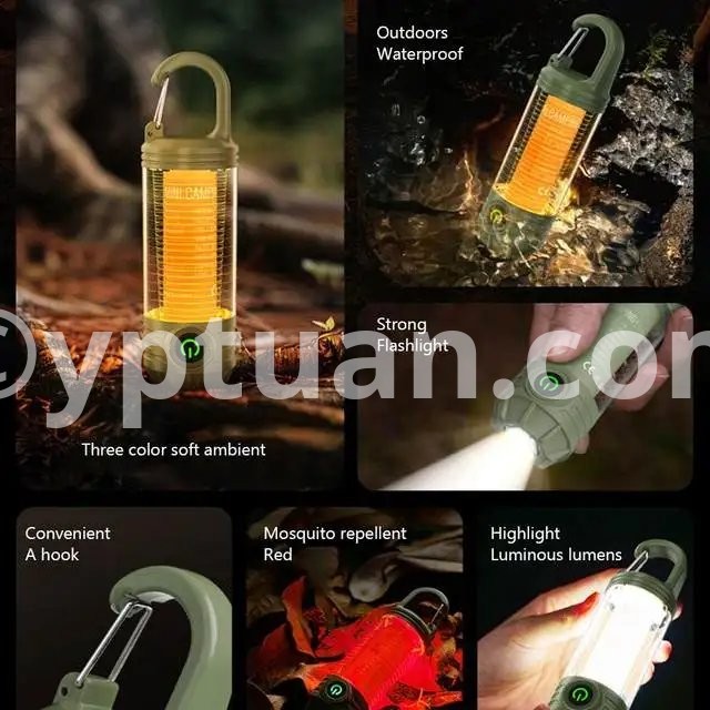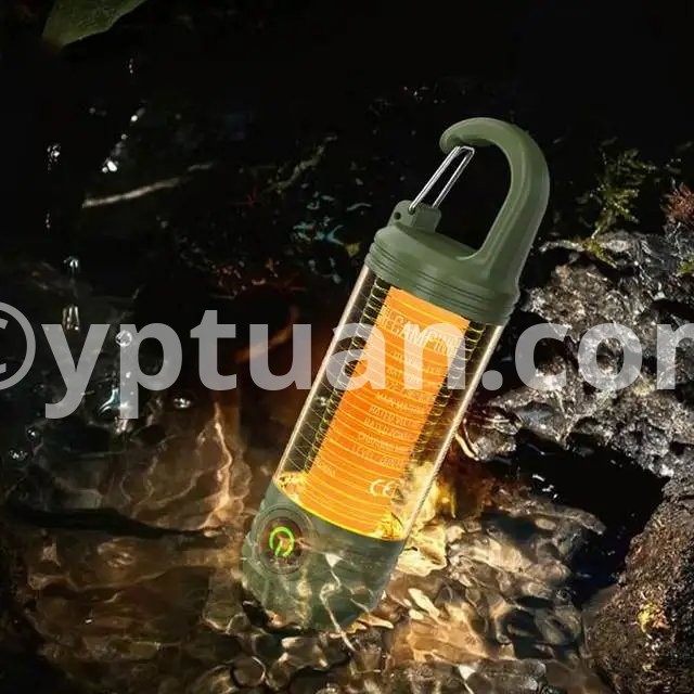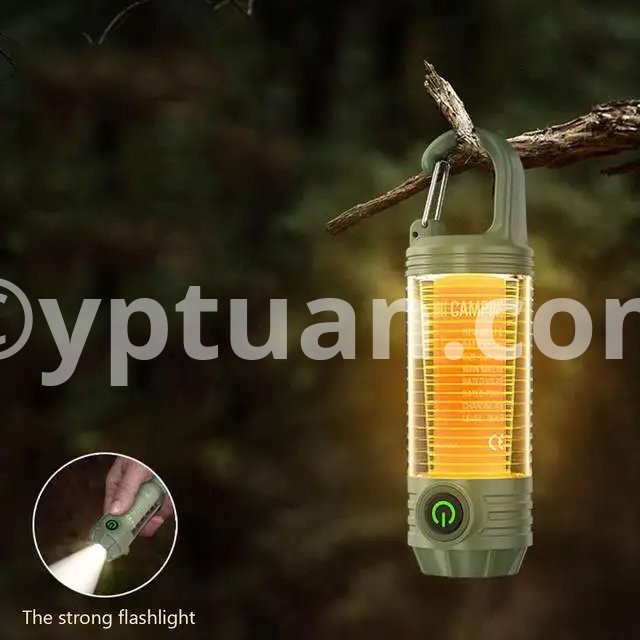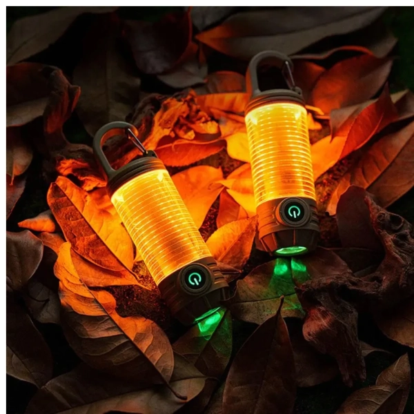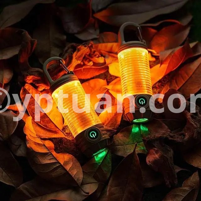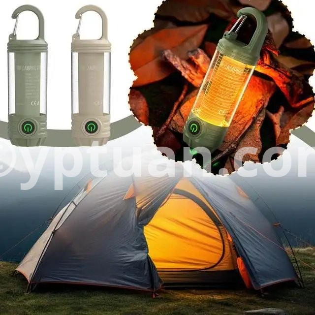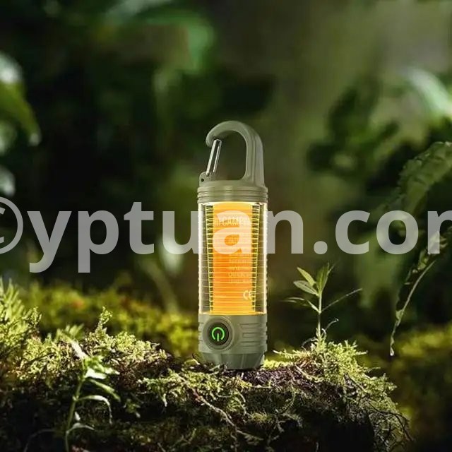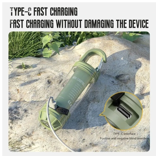 1. Portable camping lamp designed for outdoor adventures, featuring Type-C charging for convenience on the go.