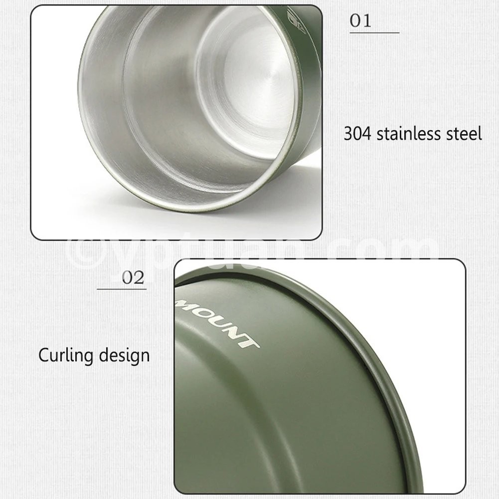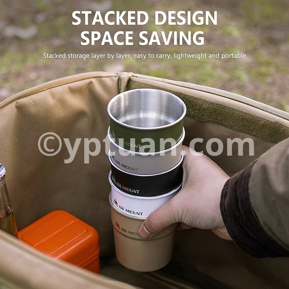 300ML Camping Mug Mountaineering Cup Stackable Camping Cup Beer Wine Cups Stainless Steel Lightweight for Indoor Outdoor Travel Features: 1.Premium 304 Stainless Steel: Our camping cup is made from high-quality 304 stainless steel, known for its durability and resistance to corrosion. The brushed finish on the inner wall adds an aesthetically pleasing touch while maintaining its robust construction. 2.Space-Saving Stackable Design: With its stackable design, our camping mug allows for efficient storage and easy transportation. Each cup fits perfectly into the next, saving valuable space in your backpack or picnic basket. Enjoy the convenience of a lightweight and portable cup that doesn't compromise on functionality or style. 3.Superior Spray Painting Process: The advanced spray painting process gives our mountaineering cup a smooth surface and a comfortable grip. The delicate metallic texture adds a touch of elegance to your outdoor experience. Feel the difference with this finely crafted cup that combines aesthetics with practicality. 4.Multi-Purpose and Versatile: Whether you need a cup for camping, hiking, picnics, or daily use, our beer wine cup is the perfect choice. Its durable construction ensures long-lasting performance, while its sleek design makes it suitable for both hot and cold beverages. Enjoy your favorite drinks in style, no matter where your adventures take you. 5.Easy to Clean and Maintain: Thanks to its stainless steel material, our coffee cup is easy to clean and maintain. Simply rinse with water and mild soap, and it will be ready for your next outdoor excursion. Say goodbye to disposable cups and embrace a sustainable and eco-friendly alternative. Specification: Origin: Mainland China Can Hold Boiling Water or Not: Applicable With Tableware or Not: Yes Fold: Yes Material: Stainless Steel Type: Cup Material: 304 Stainless Steel, PU (Cup Cover) Color: Gray, Army Green, Khaki, Black, White, Silver Weight: 70g Size: Mouth Diameter: 8cm, Height: 8cm,Thickness 0.4mm Capacity: 300ml Note: Due to the different monitor and light effect, the actual color of the item might be slightly different from the color showed on the pictures. Thank you! Please allow 1-2cm measuring deviation due to manual measurement.