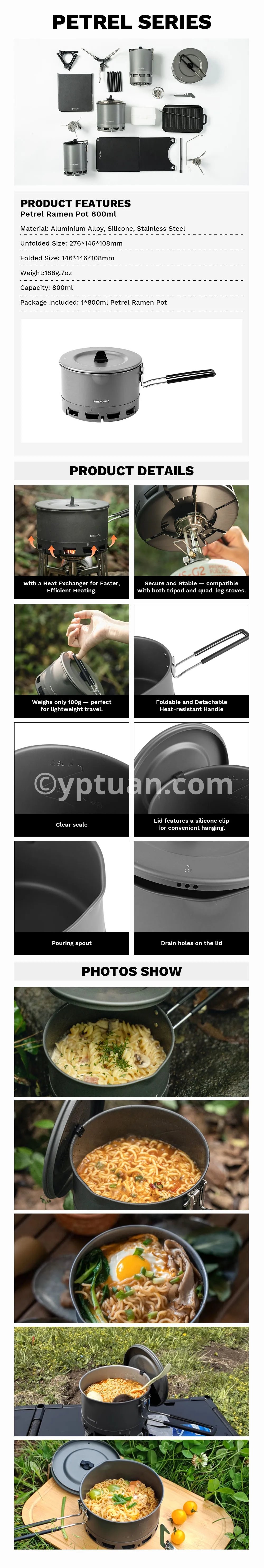 Fire-Maple Petrel Ramen Pot Ultralight Heat Exchanger Lightweight Portable Pot for Hiking Travel Camping Backpacking