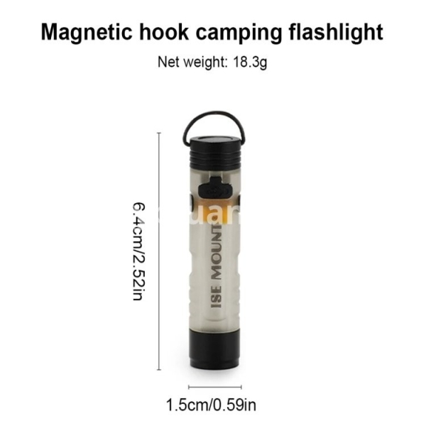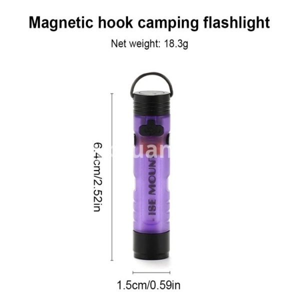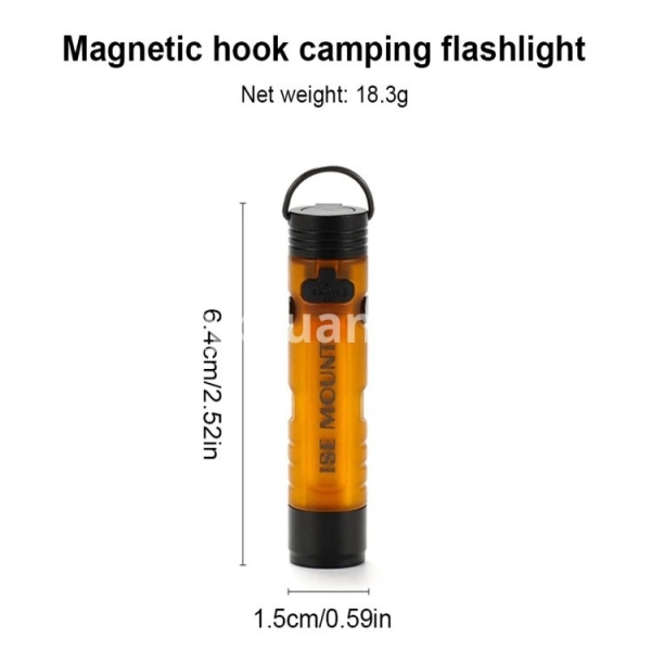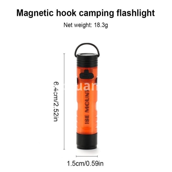 LED Outdoor Mini Flashlight with Magnetic Hook Portable Camping Flashlight Type-C Charging Camping Pocket Torch for Camping Tent Features: 1. High-Power Illumination: Equipped with an XPG3 5W LED, the outdoor mini flashlight delivers up to 350 lumens, providing powerful brightness for any situation. Whether you're exploring the outdoors or need emergency lighting, this flashlight ensures you have the visibility you need. 2. Dual-Color Options: The side light of this small handheld flashlight offers two color temperatures-white and warm-allowing you to choose the lighting that suits your environment or preference. This versatility makes it perfect for diverse settings, from camping to late-night reading. 3. Fast USB-C Charging: Featuring a Type-C fast charging port, this portable camping flashlight can be fully charged in just one hour. Spend less time waiting and more time enjoying your adventures with a quick and efficient power-up. 4. Versatile Mounting: Designed with a magnetic tail and hook, this pocket size work light is ideal for hands-free use in various outdoor environments. Easily attach it to metal surfaces or hang it wherever you need, enhancing its practicality and convenience. 5. Convenient Accessories: Comes with a hat clip, transforming the camping pocket torch into a headlamp for hands-free lighting. Additionally, the quick-release carabiner allows for easy attachment and detachment, making it simple to carry and access whenever needed. Specification: Origin: Mainland China Material: Aluminum Alloy + PC Size: Diameter 1.8*6.5cm/0.7*2.54in Color: Black,Dark Brown Weight: 19g Brightness: Front Light (Super Bright 350lm, High Brightness 250lm, Medium Brightness 100lm, Low Brightness 50lm, Low Brightness 10lm) Side Light (White Light/Yellow Light High Brightness 70lm, Low Brightness 30lm, Low Brightness 10lm) Charging: Type-C Charging Interface Battery: Built-In 601040 Lithium Battery (200mAh) Charging Time: 1 Hour Lighting Distance: 30-50m Battery Life: Front Light (Super Bright 0.4h, High Brightness 1h, Medium Brightness 2h, Low Brightness 3h, Low Brightness 4.5h) Side Light (White Light/Yellow Light High Brightness 1.5h, Side White Low Brightness 4h, Low Brightness 8h) Lamp Beads: Front Light XPG3 5W Lamp Beads Up To 350lm Structure: The Tail Is Equipped With Strong Magnets And Hanging Rings How to use: 1. The product has 4 gears for the front light, and the side light has 3 gears for white light and yellow light respectively; the front light and side light switch requires quick double-clicking the button, single-clicking to adjust the brightness, and the side light displays yellow light after three times; long-pressing the button in any state is the super bright gear for the front light (the switch needs to be kept pressed to light up). 2. Charging: The red indicator light is on when charging, and the green indicator light is on when fully charged. 3. Power indicator: When the power is normal, the indicator light next to the button is green, and when the power is low, the indicator light is red and flashing. Precautions: When the light is not used for a long time, avoid letting the lithium battery be in a state of power loss for a long time, which will greatly reduce the service life. It can be charged every two weeks or so, and it is best to keep it in a half-powered storage state (about 40%~60%). Note: Due to different monitor settings and lighting conditions, the actual color of the item may vary slightly from the pictures. Thanks for your understanding! Please allow a 1-2 cm difference in measurements due to manual measuring.