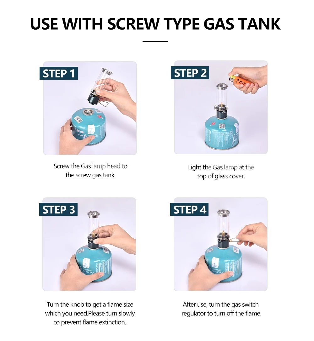 Camping Gas Lamp High Temperature Explosionproof Glass Design Can Adjust Brightness Portable Operation Camping Necessary