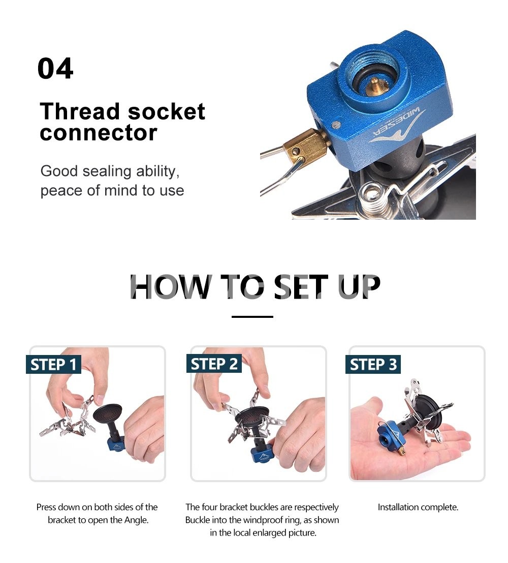 2. When connecting the gas tank, first make sure that the switch on the connection valve is closed to avoid air leakage during installation; When selecting gas tanks, you can choose gas tanks with high brand purity and no impurities. so as not to block the nozzle; After the stove is used, close the connection valve switch first, Wait a few seconds before connecting the valve from the tank.