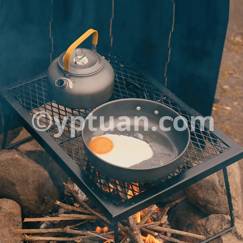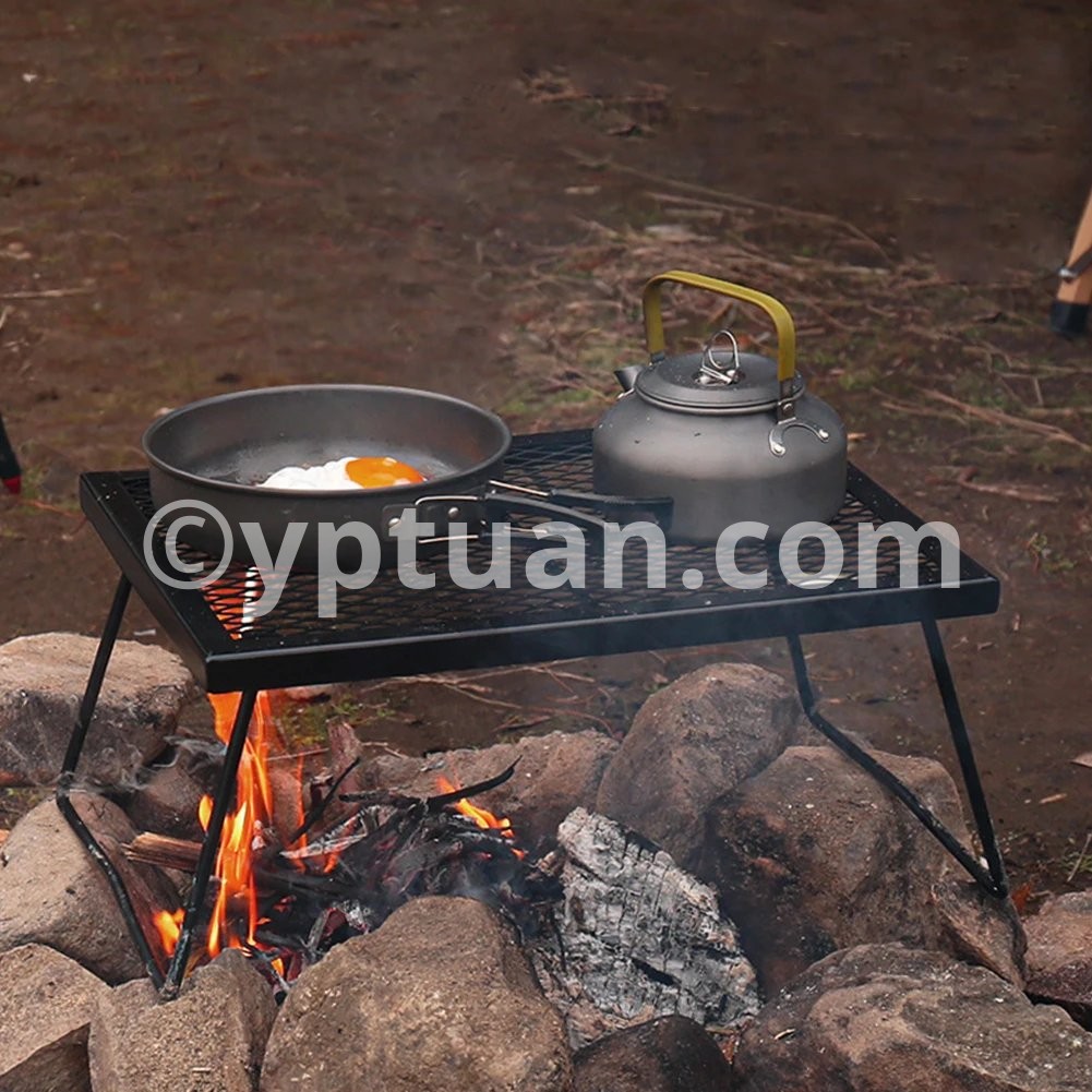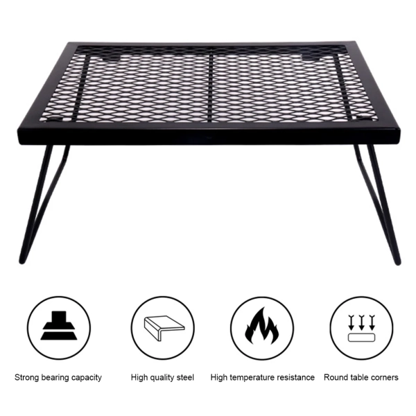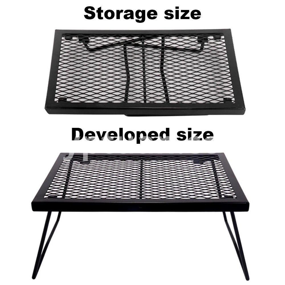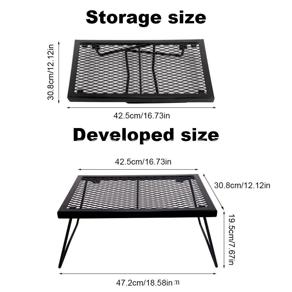 Campfire Grill Grate Folding Over Fire Camp Grill Heavy Duty Camp Fire Cooking Rack Foldable for Outdoor Camping Cooking Fire Pit Features: 1. Foldable Design: This campfire grill grate features a convenient foldable design, making it easy to pack and transport. It fits neatly into a storage bag, saving space and ensuring portability for any outdoor adventure. 2. Fire-Resistant Coating: Built to withstand intense heat, this grill grate is coated with a high-temperature resistant finish, ensuring it remains and reliable even when exposed to direct flames. 3. Versatile Cooking Surface: Perfect for camping and picnics, this grill grate serves as a versatile cooking platform, allowing you to boil water and saute dishes simultaneously over an open fire. 4. Sturdy and Heat Stable: Designed with strong heat stability, this grill grate can safely support high-temperature cookware, providing a dependable surface for all your outdoor cooking needs. 5. Flexible Setup: Featuring a smart clip design with insertable table legs, this grill grate offers flexible assembly. It adapts to various settings, enhancing your outdoor cooking experience during camping, barbecues, or parties.Specification: Origin: Mainland China Main material: steel + high temperature spray paint Product color: black Product size: 42.5x30.8x19.5cm Note: Due to different monitor settings and lighting conditions, the actual color of the item may vary slightly from the pictures. Thanks for your understanding! Please allow a 1-2 cm difference in measurements due to manual measuring.