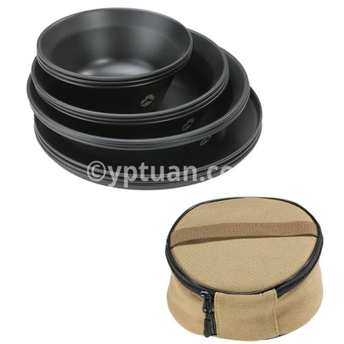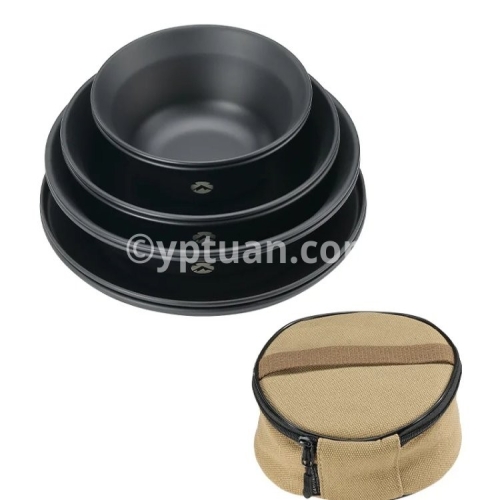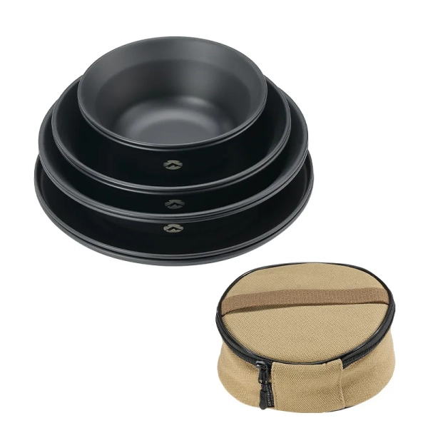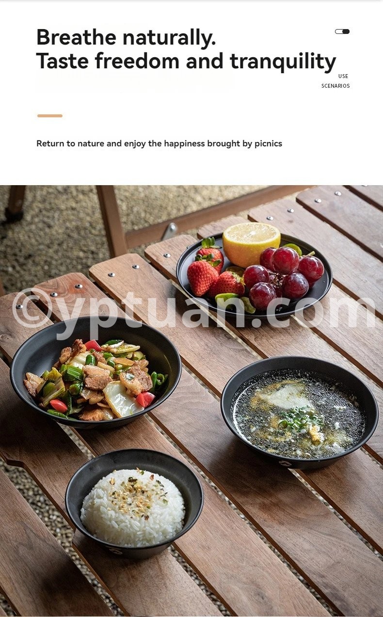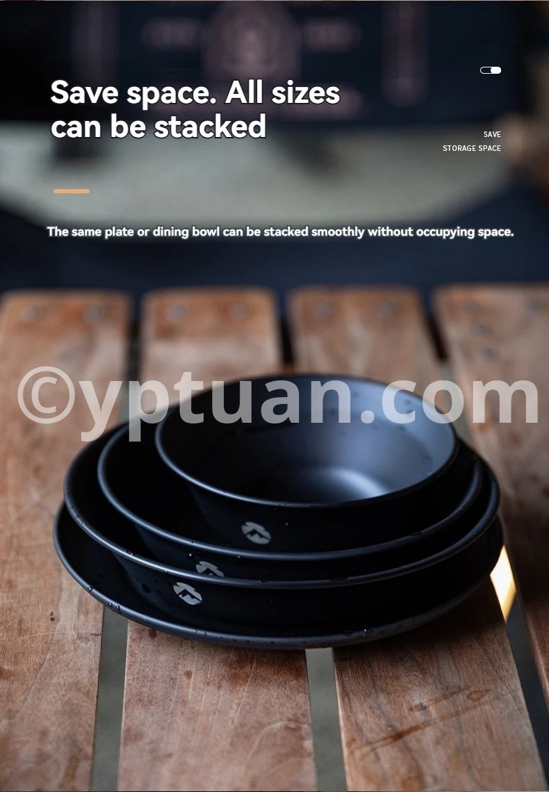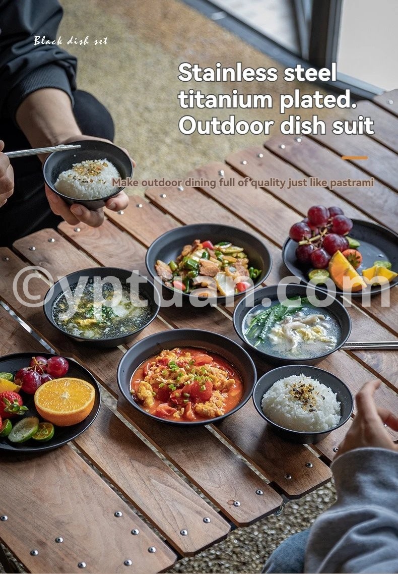 Blackened Stainless Steel Surface Coated with Titanium, Portable Outdoor Camping Barbecue Soup Bowl Plate Tableware Set