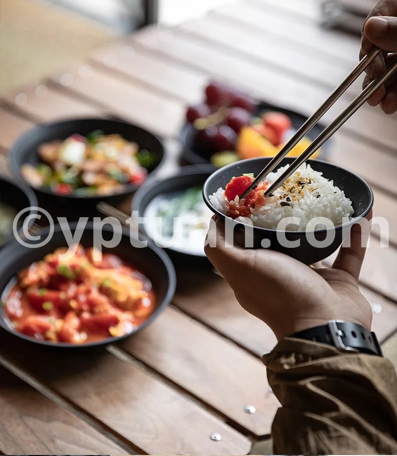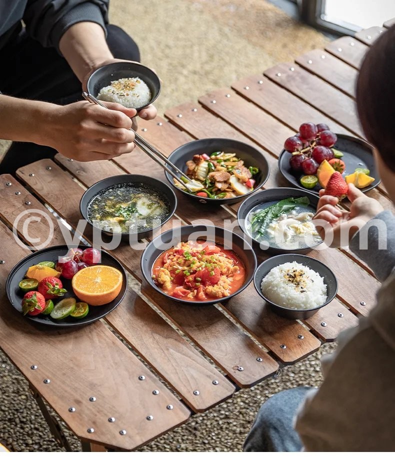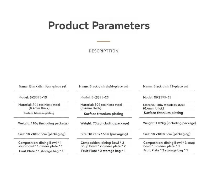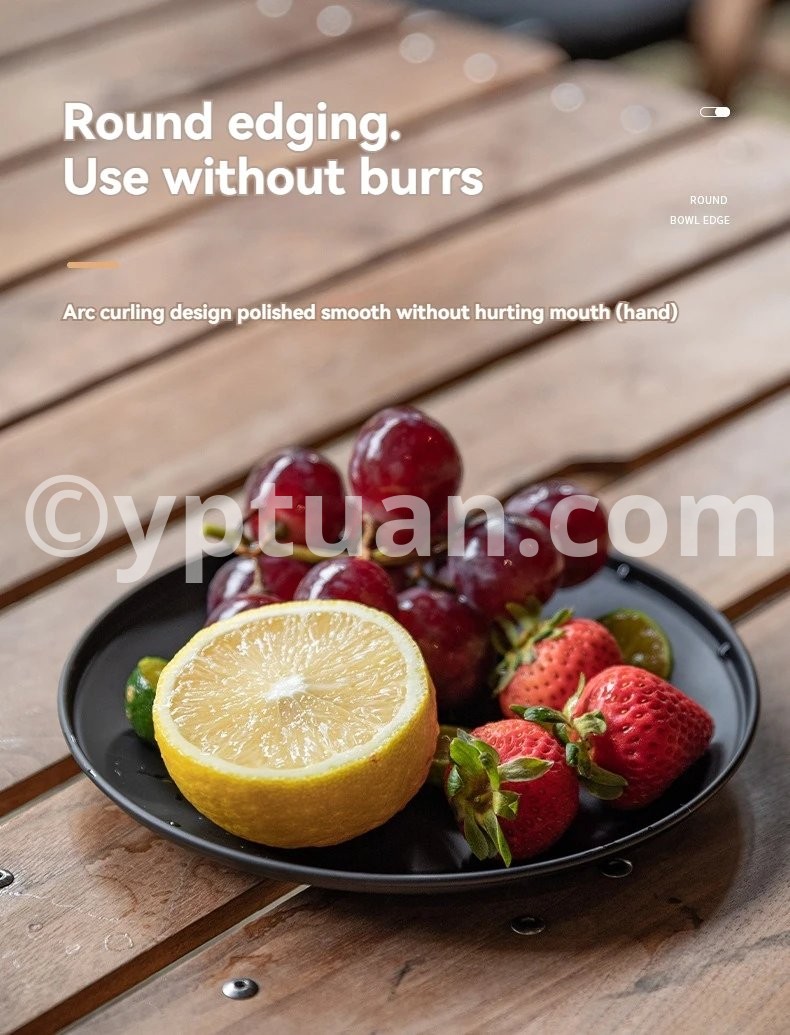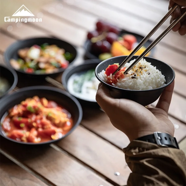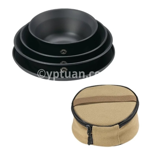 Blackened Stainless Steel Surface Coated with Titanium, Portable Outdoor Camping Barbecue Soup Bowl Plate Tableware Set