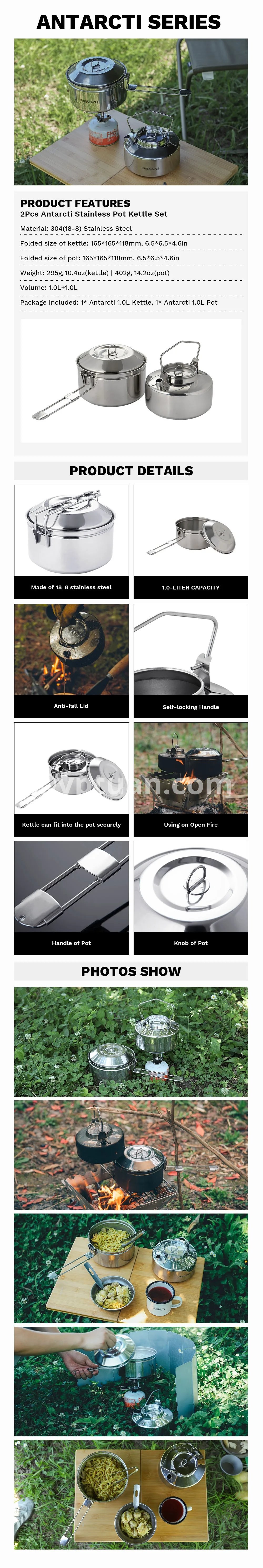Fire Maple 2Pcs Antarcti Stainless Pot Kettle Set Bushcraft Gear Backpacking Camping Outdoor Durable Pot Kettle S304