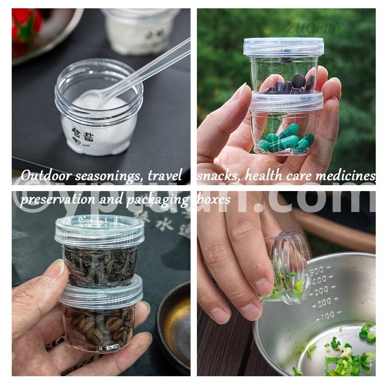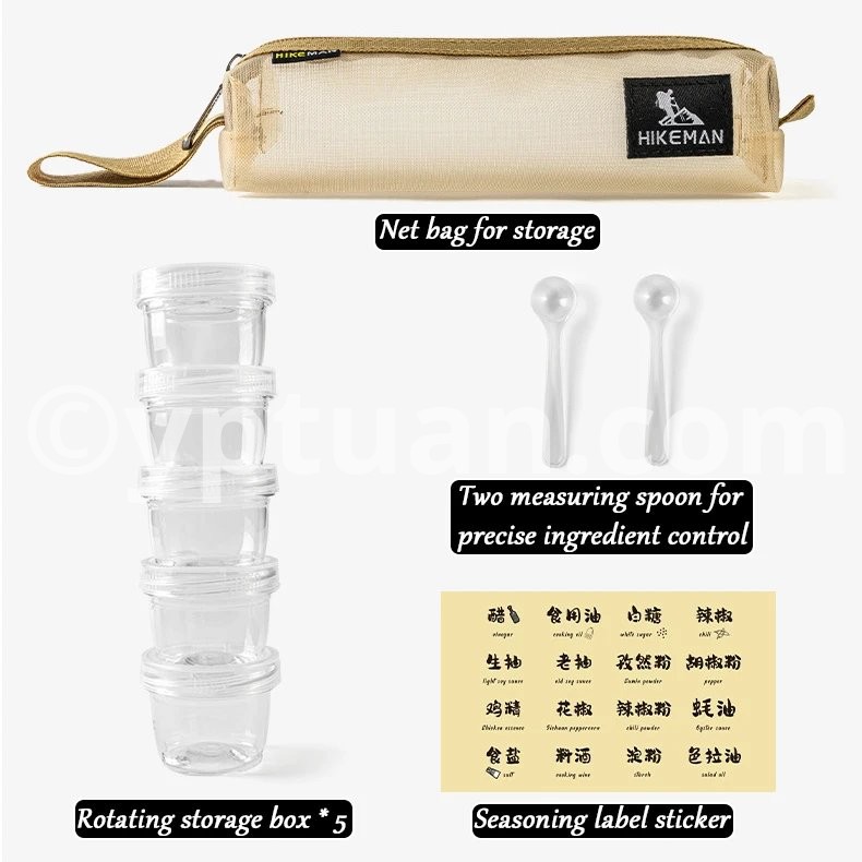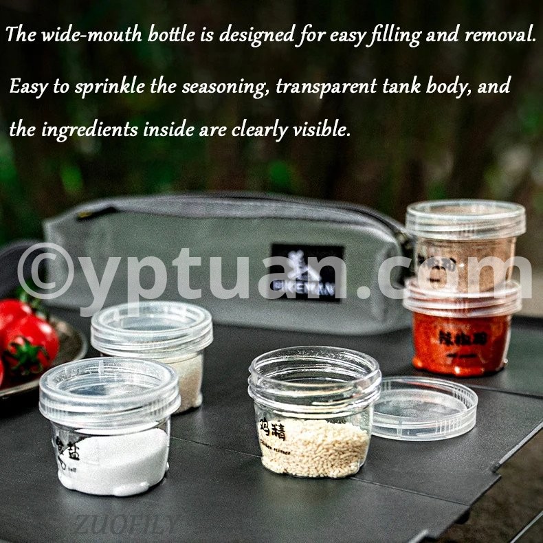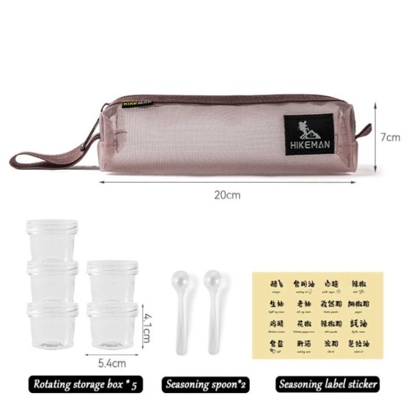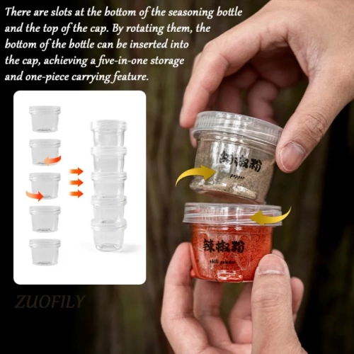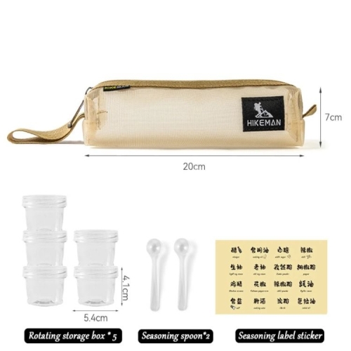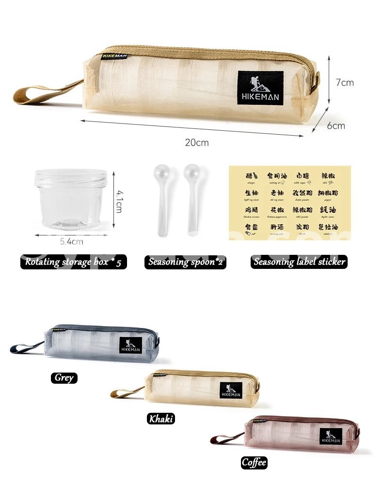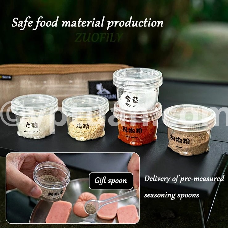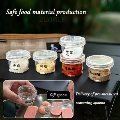 Description: Outdoor Seasoning Box Set Camping Combination Seasoning Jar Seasoning Cans for Travel Portable and Sealed Barbecue Packaging Box Specifications: Brand: ZUOFILY Name: Outdoor Seasoning Box Set Features: Portable and Spliceable Specifications: Net bag for storage *1, Spatula for seasonings *2Rotating storage box*5, seasoning label stickers*1 Single seasoning bottle capacity: 40ml Material:PET bottle body + PP cap Color:Khaki, coffee, gray Applicable scenario: Outdoor camping Feature: Modular splicing design A single seasoning jar can be used independently or can be freely assembled by rotation to avoid scattering and save backpack space. Super strong sealing and leak proof Adopting food grade silicone ring and rotating locking cover design, it has strong sealing, moisture-proof and anti spill properties, suitable for hiking and bumpy road conditions. The material is food grade PP plastic, lightweight, and foldable for storage. The set includes a mini seasoning spoon, designed to fit the can body for easy access. Transparent window design allows for easy identification of seasoning types (such as salt, sugar, chili powder, etc.) at a glance. A versatile item that can be packaged into pills, nuts, small parts, etc. in addition to seasonings, suitable for camping, travel, and daily commuting. Package Included: 1PC Outdoor Seasoning Box Set Note: -Due to hand measure, the size may have 0.5-1 cm error -Due to Different Monitor, the color may have difference -Due to long shipping, the item may damage in transit, if the item damage, pls contact us firstly immediately before leave feedback, thanks for your understanding zuofily.