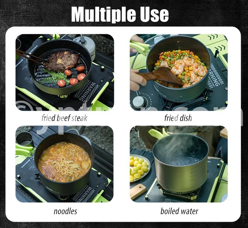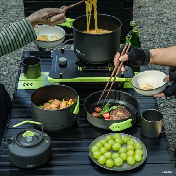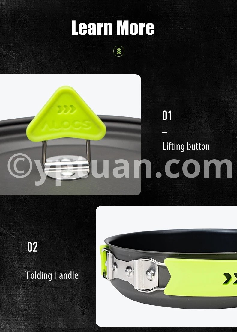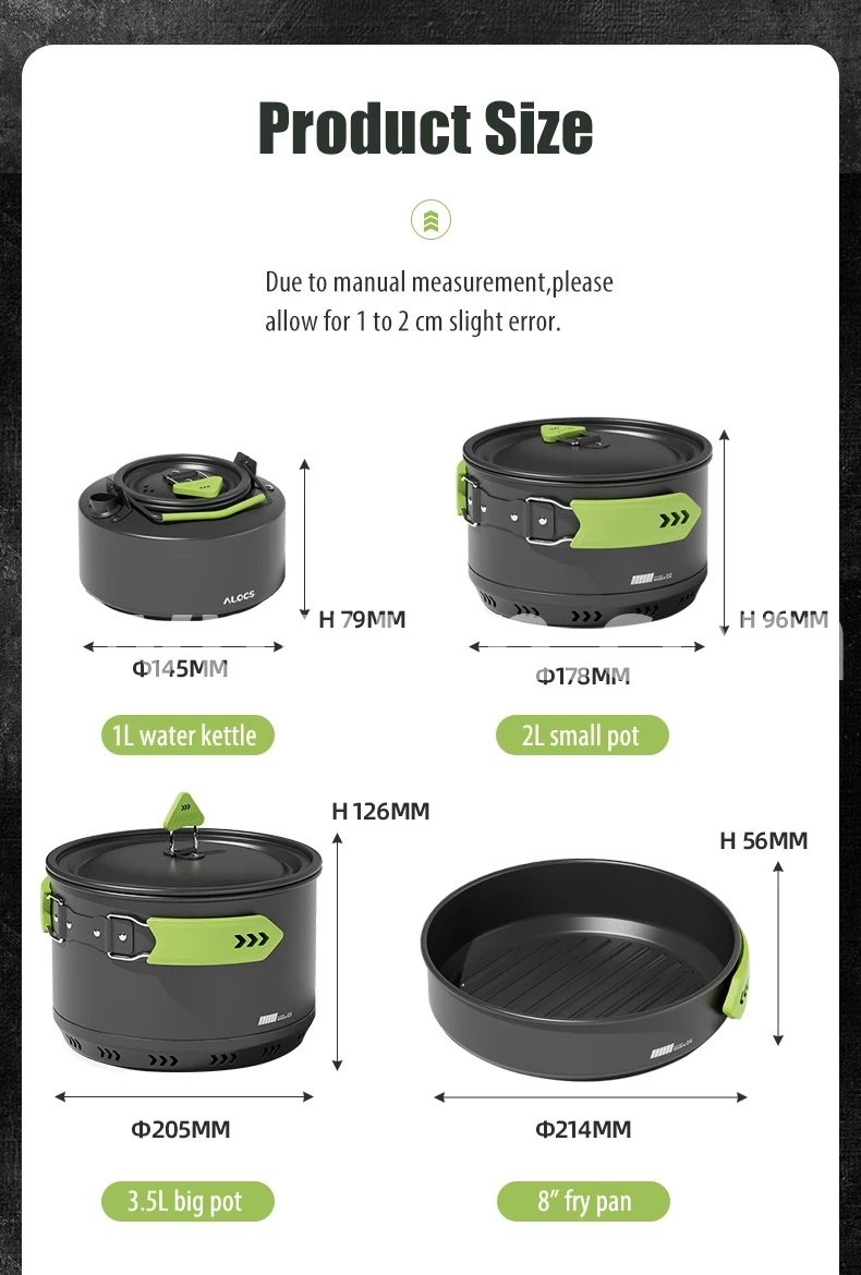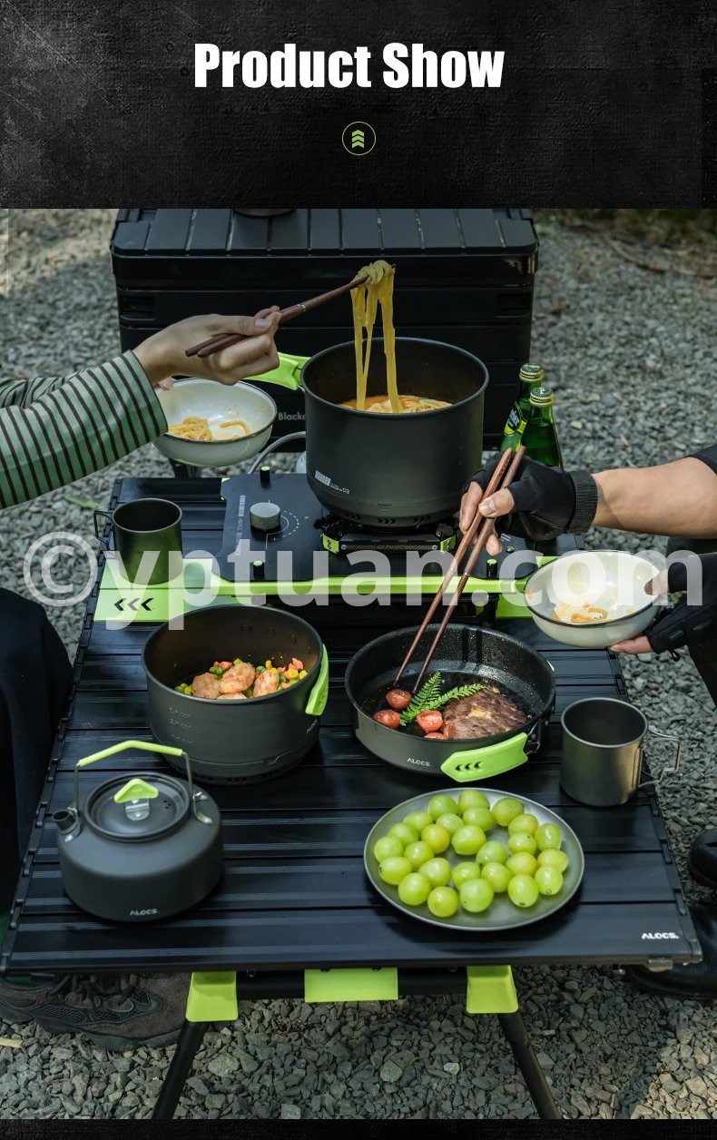 Alocs CW-C65 Camping Cookware Pots Fry Pan Water Kettle Set Compact Mess Kit Gear For Backpacking Travel Picnic Aluminum Alloy