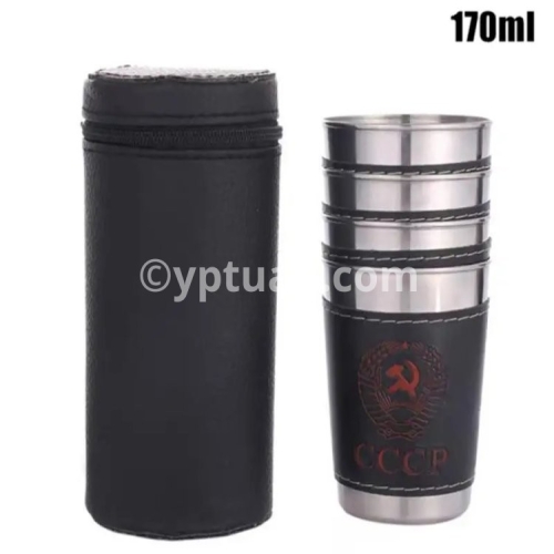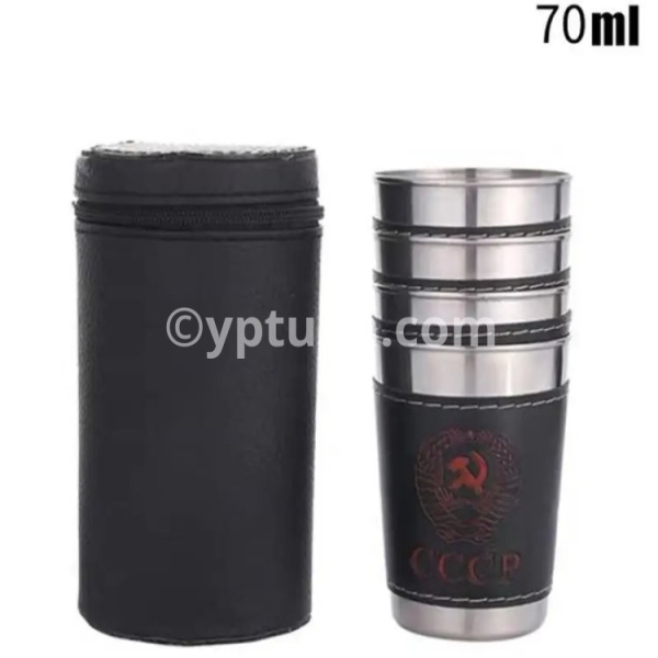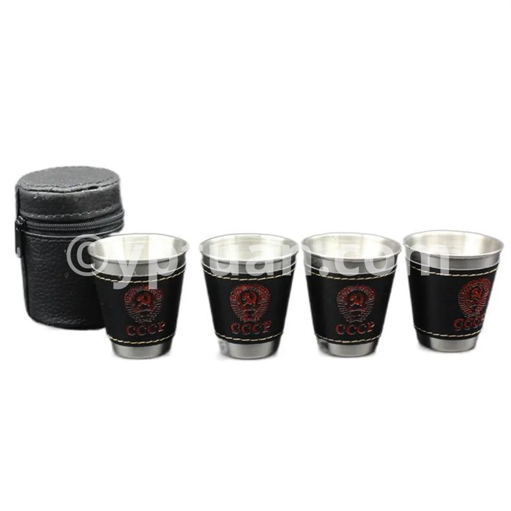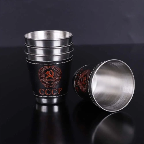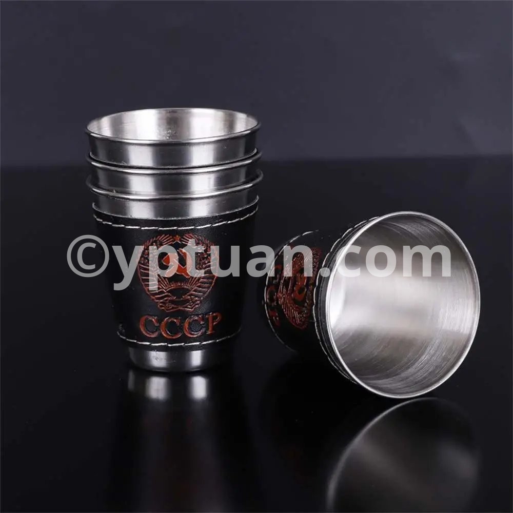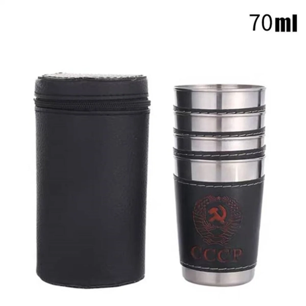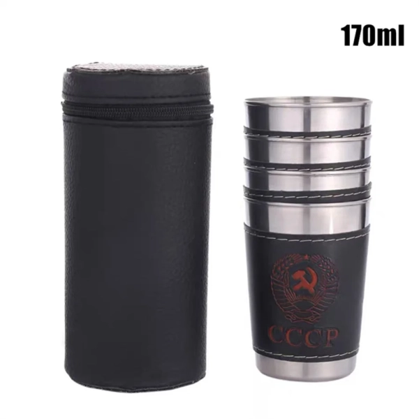 1set Outdoor Travel Stainless Steel Cups Mini Practical Set Glasses For Whisky Wine Cup With Leather Cover Bag 30/70/170ml