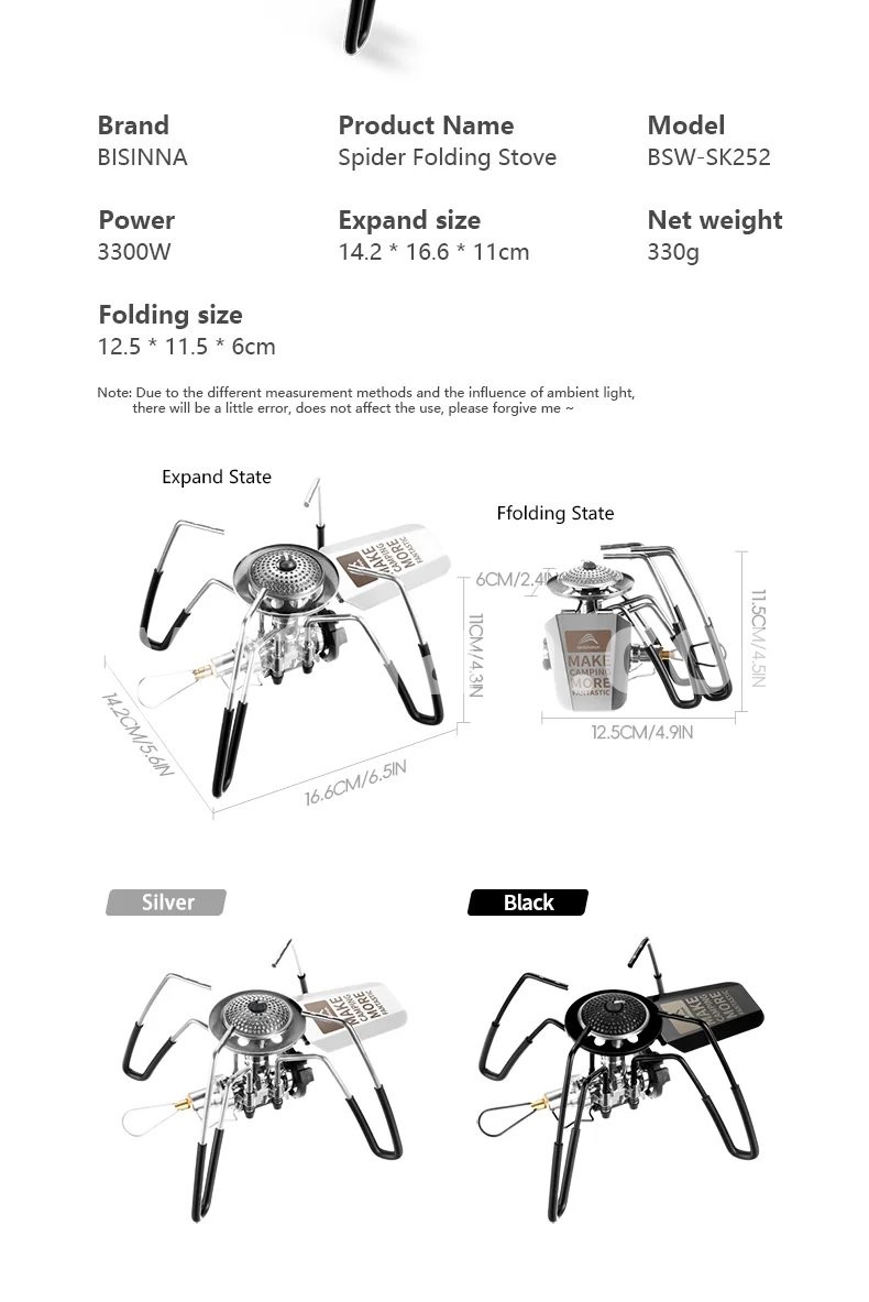 BISINNA Portable Camping Spider Stove 3300W High-power Folding Lightweight Gas Burner for Outdoor Hiking Picnic Barbecue