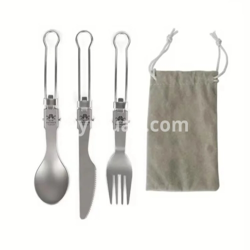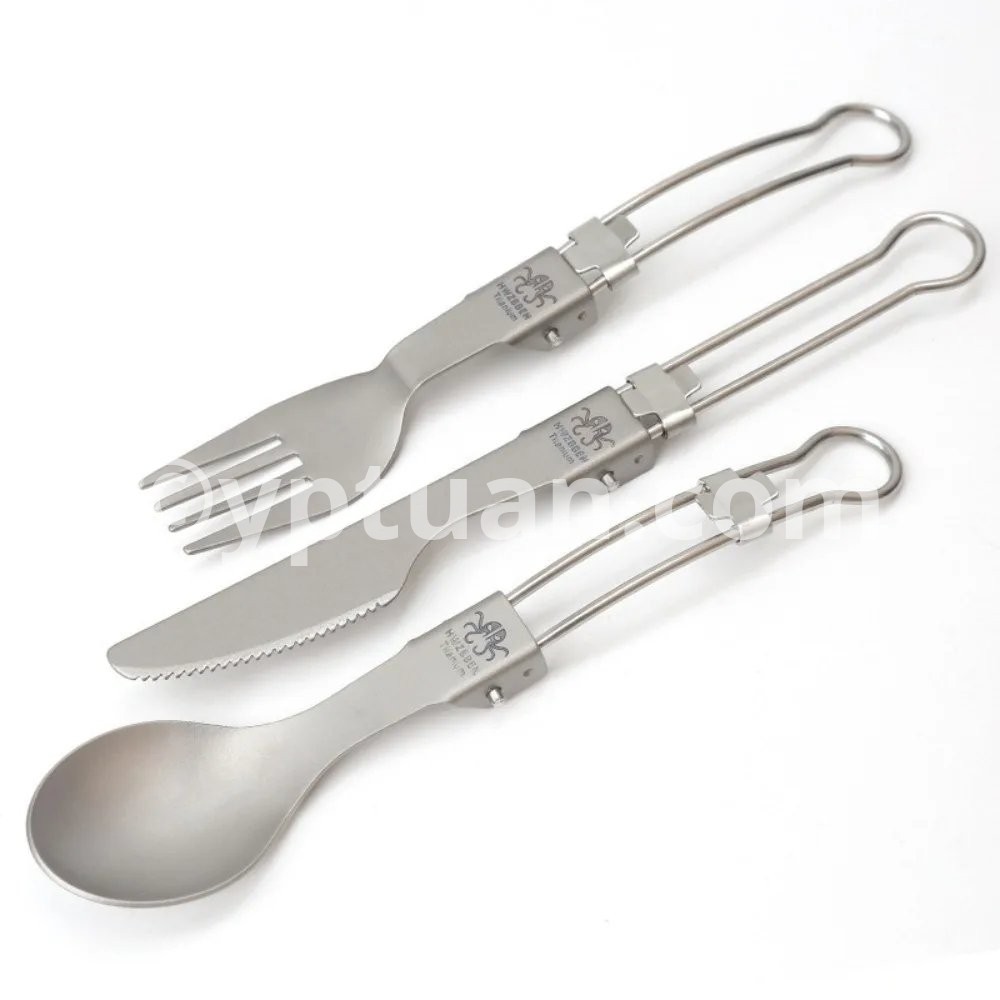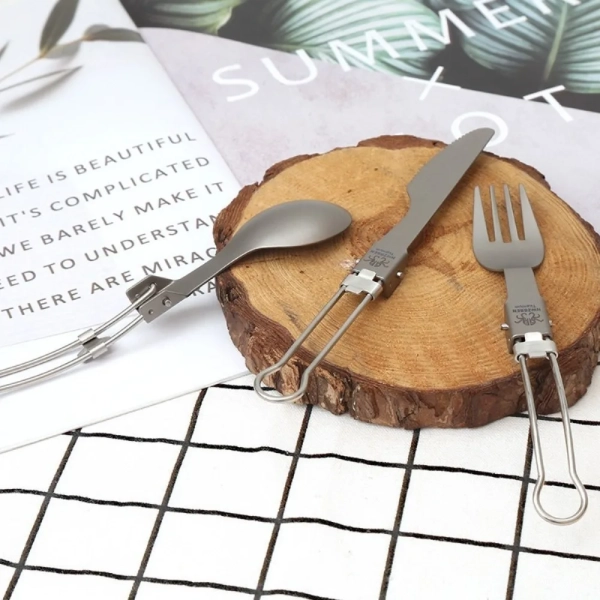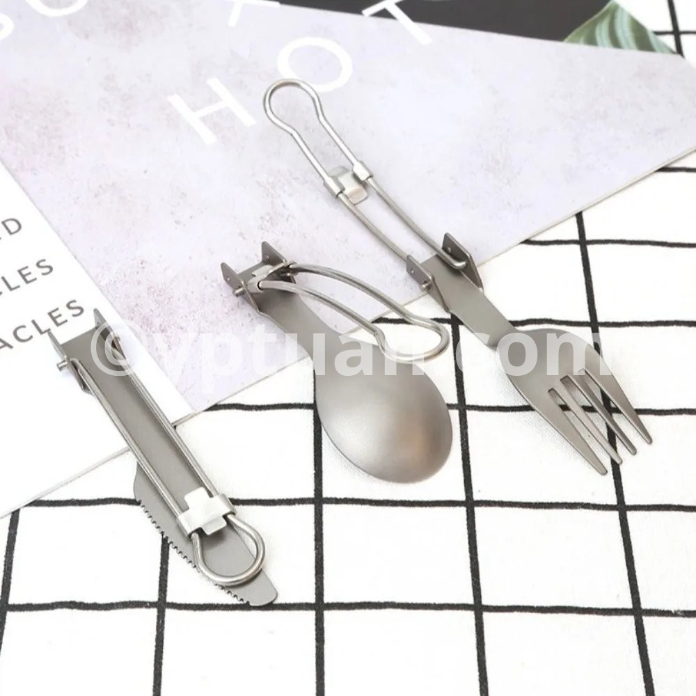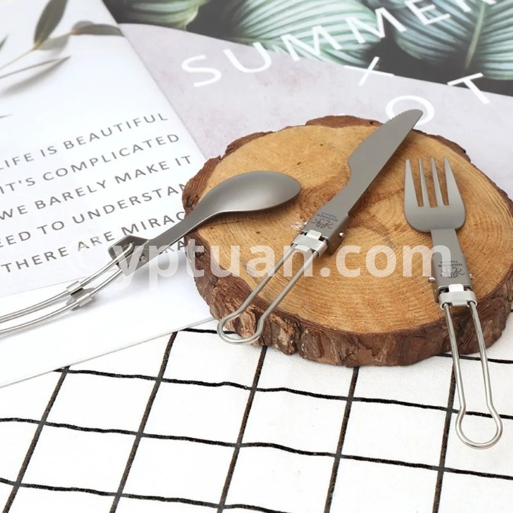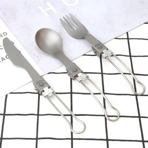 Half Polished Titanium Folding Fork Portable Fork Spoon Foldable Travel Kit Outdoor Tableware Set Hiking Picnic Camping Supplies