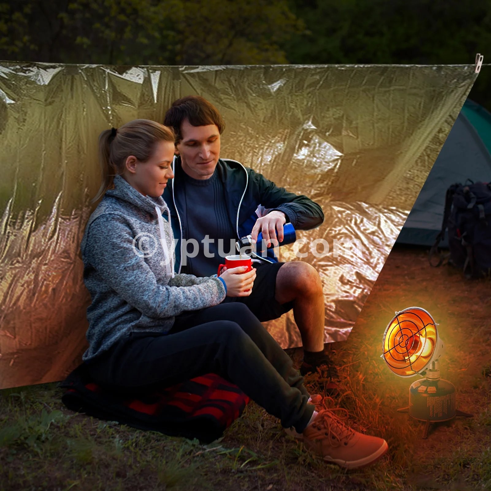 Portable Gas Heater with Emergency Blanket and 4 Clips Camping Heater Warmer Heating Stove Outdoor Emergency Survival Kit