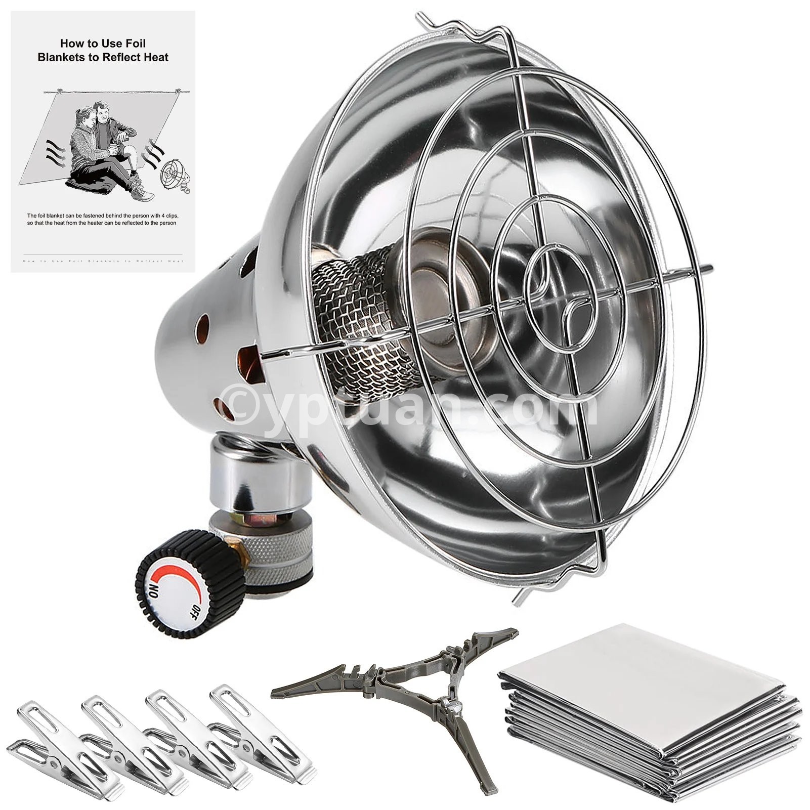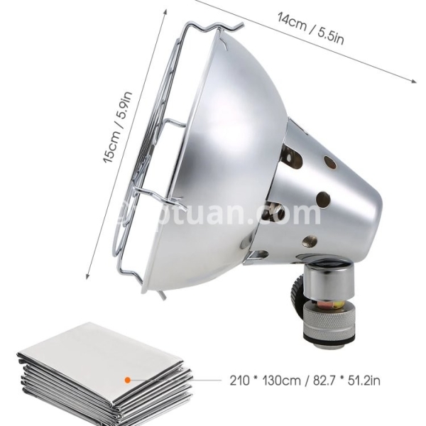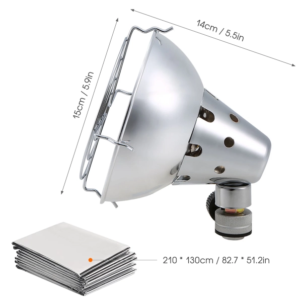 Specification: This outdoor emergency kit includes a heater, an emergency blanket, and 4 clips. It is lightweight and portable for your outdoor trips. Features: Outdoor emergency kit includes a heater, an emergency blanket, and 4 clips. Durable stainless steel construction for long-lasting durability and high temperature resistance. Mounts the heater to a gas stove and requires no electricity. Adjustable safety valve controls gas flow and heating power. Waterproof, windproof emergency blanket keeps you warm in emergency survival situations. Includes 4 clips that help hang the emergency blanket to reflect and make the most of the heat when using the heater. Specifications: Heater: Material: Stainless steel & Aluminum alloy & Copper Bracket color: random Gases Type: Butane Supply Pressure (bar): Direct pressure Injector Diameter (mm): 0.22 Normal Heat Input (KW)(Hs): 1 Fuel Consumption(g/h): 72 Designation of Gases Container: 227/230 grams 509ml 450 grams 990ml 230 grams 509ml 300/300 grams 806ml 450 grams 990ml Dimension: 150 * 140mm / 5.9 * 5.5in (D * H) Weight: 306g / 10.8ounce Emergency Blanket: Material: PET Size: 210 * 130cm / 82.7 * 51.2in Weight: 50g / 1.8oz Clip: Material: Stainless steel Size: 5 * 2.5cm / 2 * 1in Weight: 5g / 0.2oz Package List: 1 * Heater 1 * Emergency Blanket 4 * Clip Package List: 1 * Heater 1 * Emergency Blanket 4 * Clip :