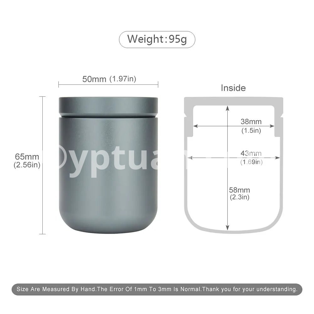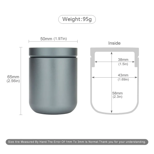Material: Aluminium Alloy Color: Black Gray Total Length: 6.5cm Outside Diameter: 5cm Note: 1. The Size is Measured Manually. There May Be a Slight Margin of Error. 2. The Weight is for Reference Only, the Weight of Each Batch Will Be Different