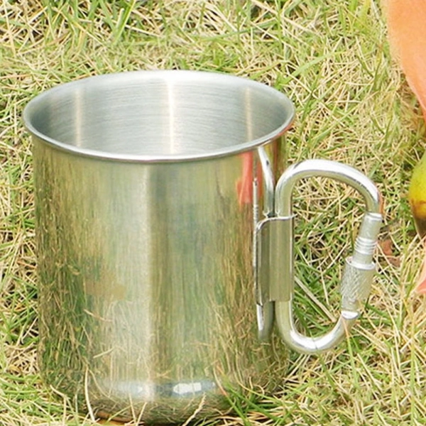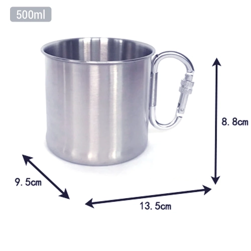 250ml / 500ml Stainless Steel Camping Mug Outdoor Backpacking Cup with Carabiner Handle for Hiking Camping Traveling Equipment