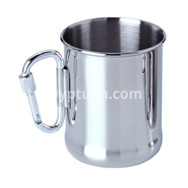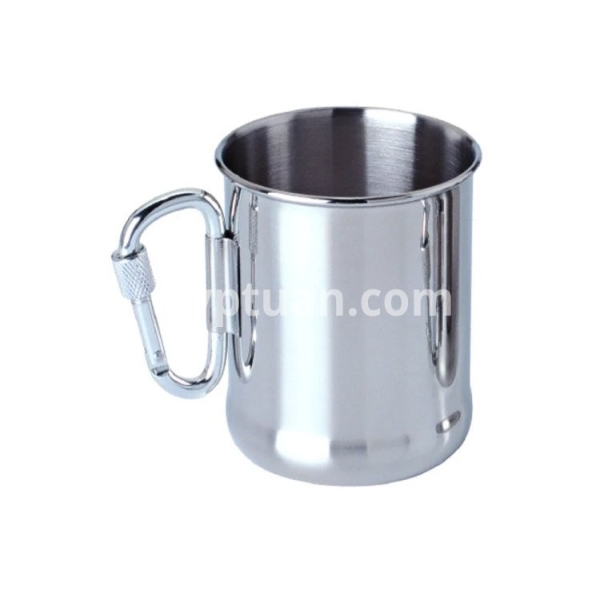 This camping coffee mug with carabiner handle has very smooth and shiny surface which is adaptable as a camping cup or cooking pot for direct use on a camping stove.
