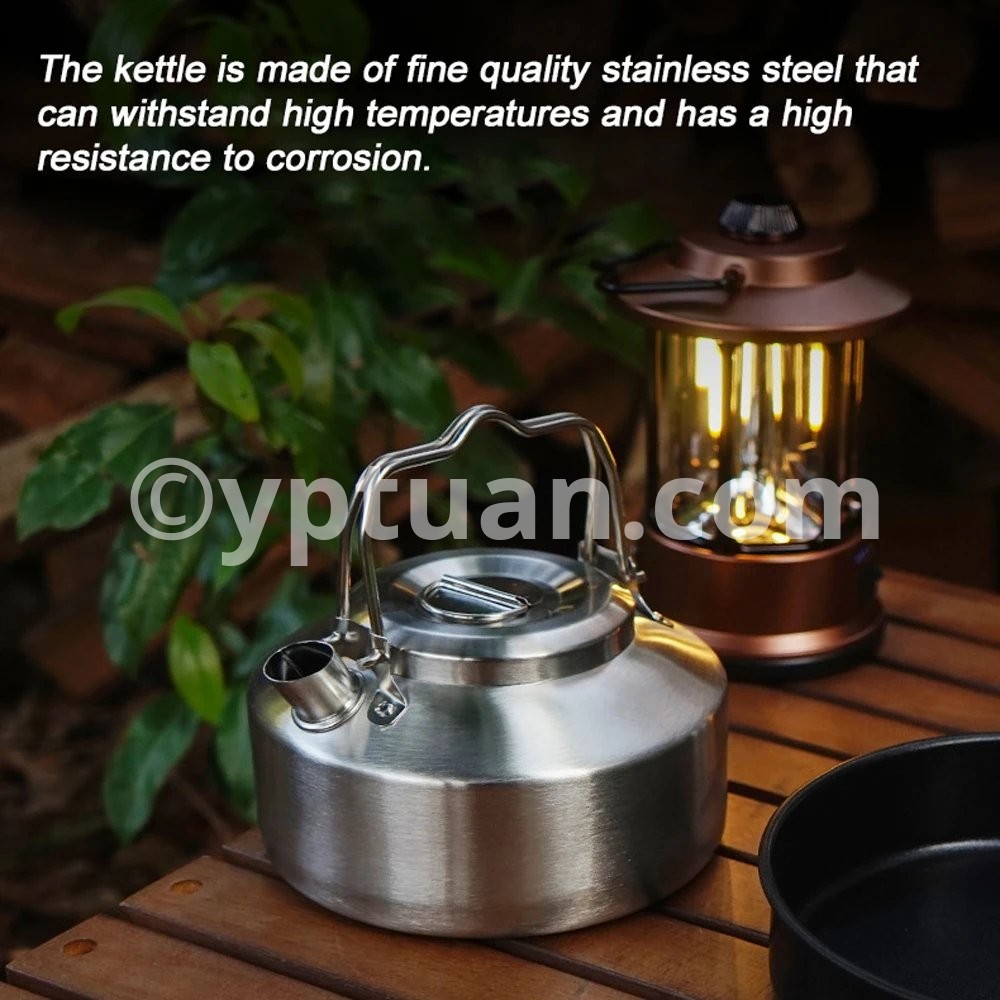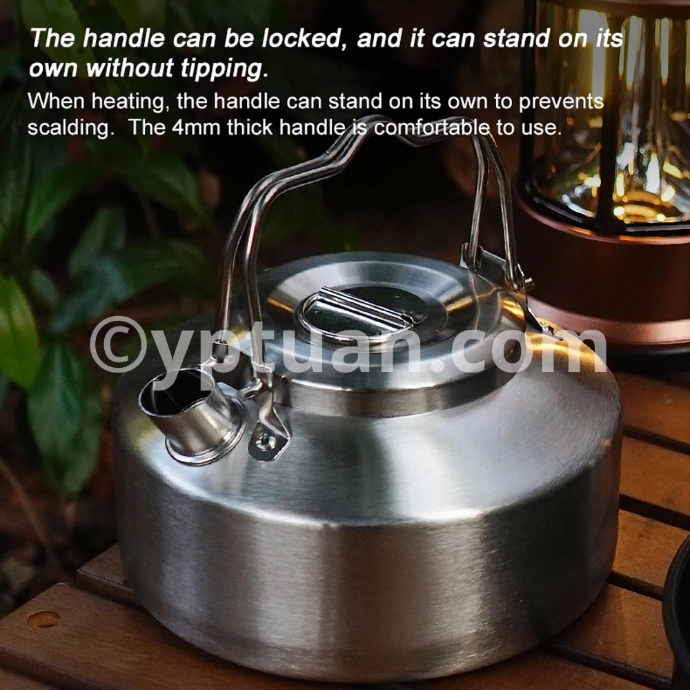 Outdoor Stainless Steel Kettle Locking Handle Camping Hung Pot Portable Coffee Pot Picnic Cooker 1L Teapot Cooking Accessory