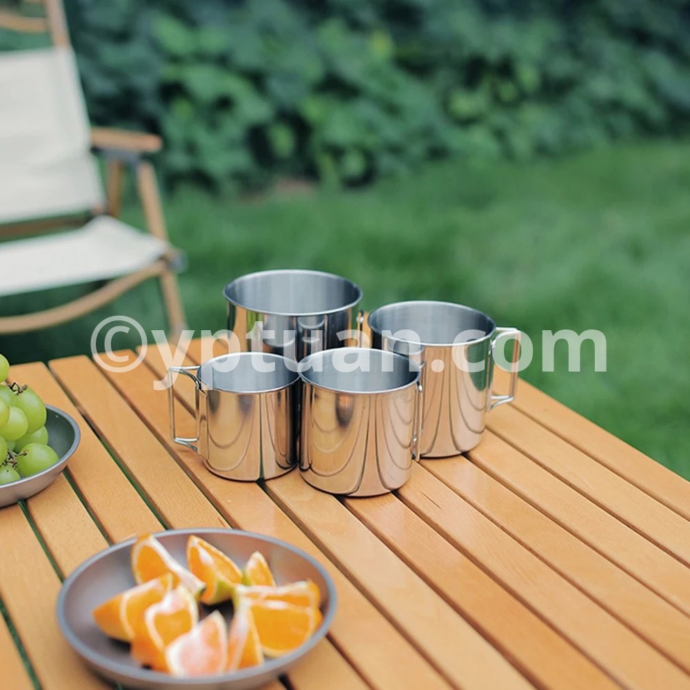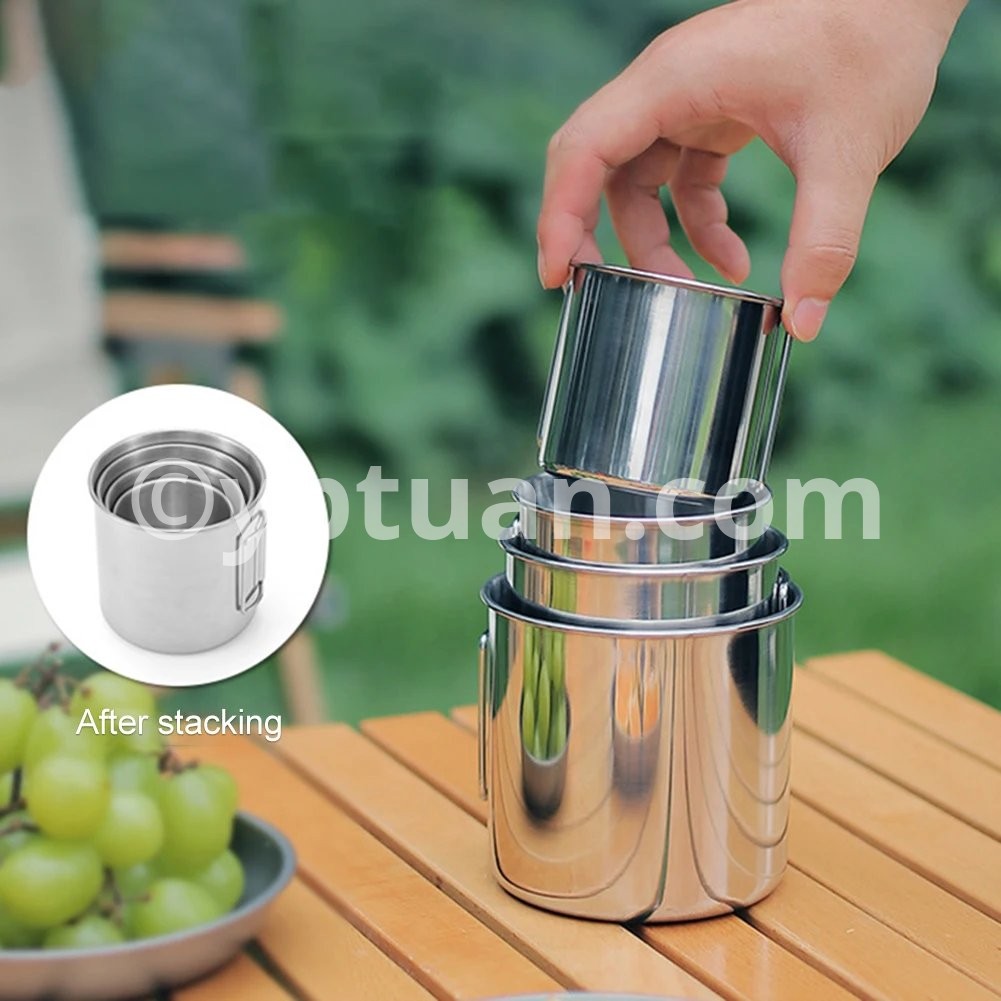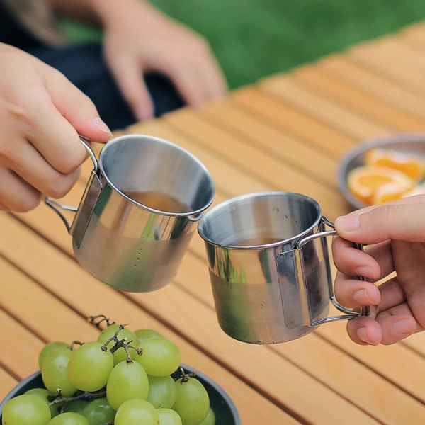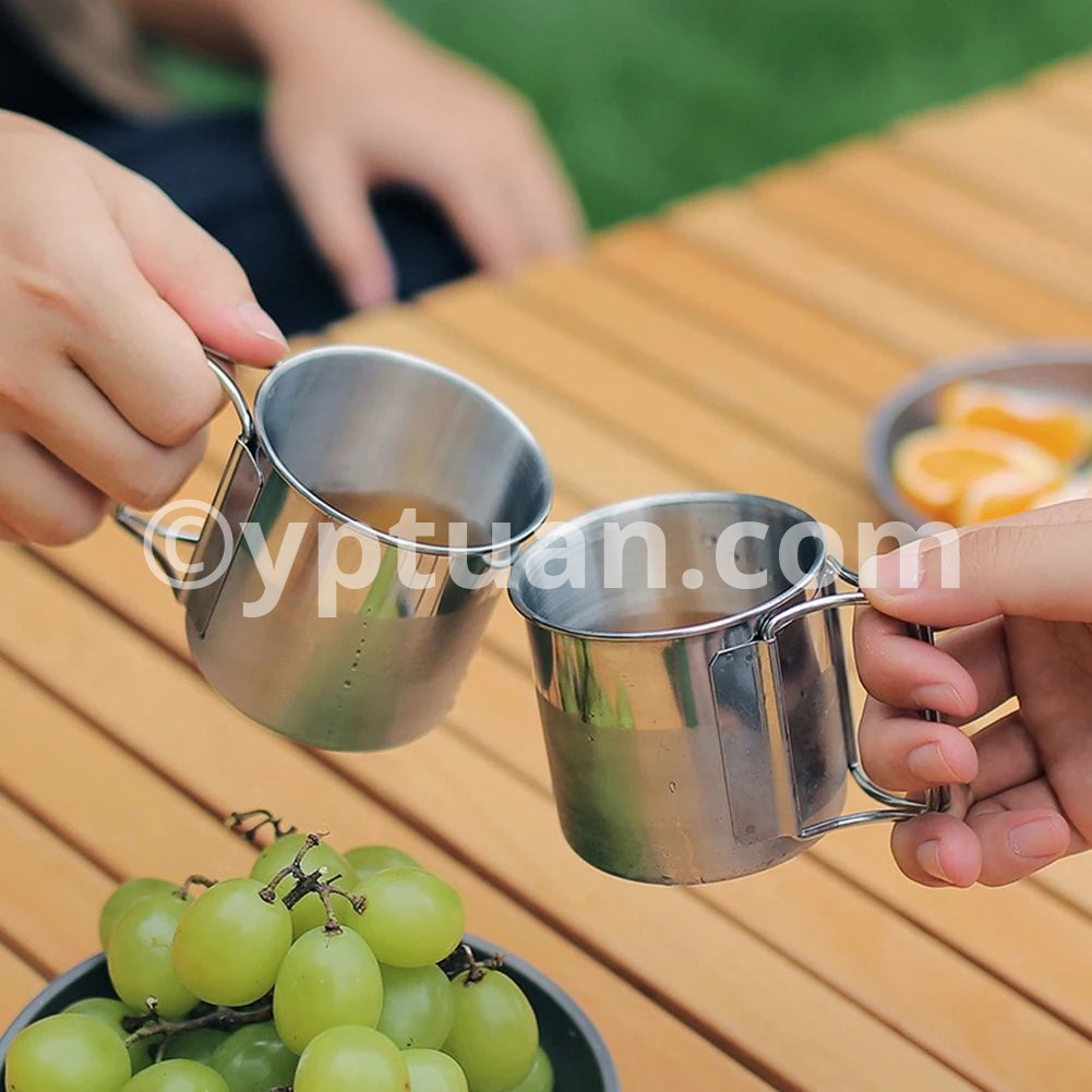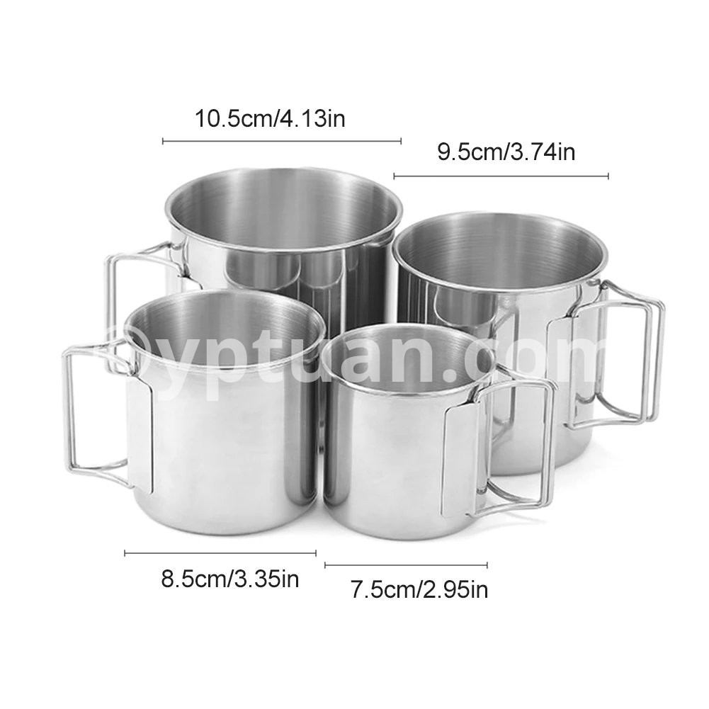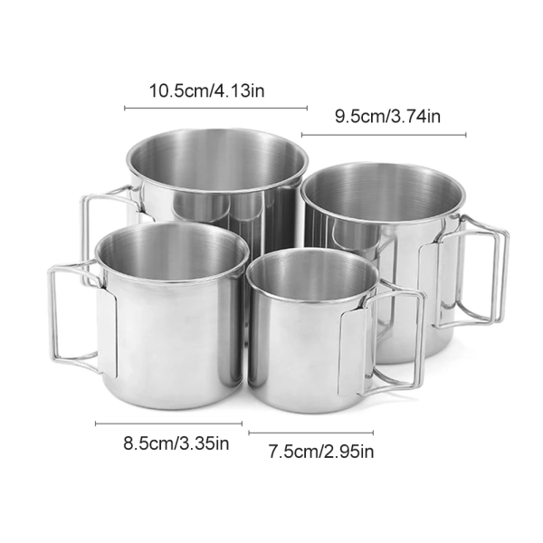 Camping Water Cup with Foldable Handle Tea Beer Coffee Mug Lightweight Portable Camping Cup Stainless Steel for Camping Hiking Features: 1.Premium 304 Stainless Steel: Crafted with high-quality 304 stainless steel, our camping water cup ensures exceptional durability and rust resistance. The smooth mirror-like surface not only adds a touch of elegance but also guarantees a long-lasting and hygienic drinking experience. 304 stainless steel is known for its corrosion resistance and ability to withstand outdoor conditions, making it the perfect choice for your camping adventures. 2.Convenient Foldable Handle: Our coffee cup features a foldable and heat-resistant handle that provides a comfortable grip while ensuring safety. The foldable design allows for compact storage, making it easy to carry in your backpack or camping gear. Enjoy your hot beverages without the risk of burning your hands, thanks to the foldable handle that keeps them at a safe distance from the heat. 3.Space-saving Stackable Design: Our camping mug is designed with a clever stackable feature, allowing you to easily stack multiple cups together for space-efficient storage. The nesting function makes it convenient to store and transport, making it ideal for camping, hiking, or any outdoor activity. 4.Versatile and Portable: Our tea beer coffee mug is not limited to just camping or outdoor use. Its versatile design makes it suitable for various occasions such as picnics, parties, or even everyday use at home. The compact and lightweight construction ensures easy portability, allowing you to enjoy your favorite beverages wherever you go. 5.Easy to Clean: Cleaning our portable camping cup is a breeze! The smooth and polished surface of the 304 stainless steel makes it easy to remove any residue or stains. Simply rinse it with water or use a mild detergent, and it will be as good as new. The hygienic and easy-to-clean nature of our cup ensures that you can enjoy your drinks without any lingering flavors or odors. Specification: Origin: Mainland China Can Hold Boiling Water or Not: Applicable Material: 304 Stainless Steel 220ml - Diameter 7.5cm/2.95in * Height 7cm/2.76in, Net Weight 80g 330ml - Diameter 8.5cm/3.35in * Height 8cm/3.15in, Net Weight 104g 500ml - Diameter 9.5cm/3.74in * Height 9cm/3.54in, Net Weight 136g 660ml - Diameter 10.5cm/4.13in * Height 10cm/3.94in, Net Weight 163g Features: Stainless Steel Material, Folding Anti-Hot Handle, Nesting Doll Storage Design Note: Due to the different monitor and light effect, the actual color of the item might be slightly different from the color showed on the pictures. Thank you! Please allow 1-2cm measuring deviation due to manual measurement.