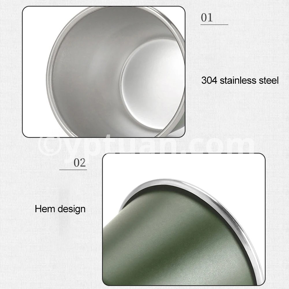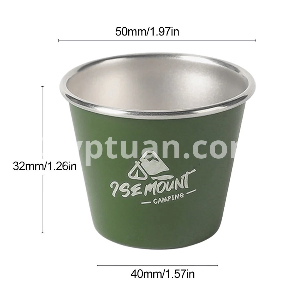 50ML Mini Camping Cup Stainless Steel Outdoor Wine Cup Stackable Lightweight Pint Cup Portable for Hiking Fishing Climbing Features: 1.Premium Stainless Steel Construction: Our mini camping cup is made from high-quality 304 stainless steel, ensuring durability and resistance to corrosion. The robust construction guarantees long-lasting use, making it a reliable choice for outdoor activities such as camping, hiking, and picnics. 2.Sleek and Stylish Design: With its advanced spray-painted surface, our outdoor wine cup boasts a smooth and lustrous finish. The exquisite craftsmanship enhances its aesthetic appeal, making it a fashionable accessory for any occasion. Enjoy sipping your favorite beverage in style with this visually appealing and eye-catching cup. 3.Space-saving and Portable: The unique stackable design allows our travel beer cup to be conveniently nested together, minimizing storage space and making it easy to carry. Whether you're backpacking, traveling, or simply on the go, this compact and lightweight cup offers hassle-free portability, ensuring you can enjoy a refreshing drink wherever you are. 4.Engraved Logo: The mini coffee mug features a meticulously laser-engraved logo, showcasing intricate and delicate patterns. This personalized touch adds a touch of elegance and uniqueness to your cup, making it stand out from the crowd. Enjoy the pride of owning a custom-engraved cup that reflects your individual style and personality. 5.Color Variety for Easy Differentiation: We offer a range of colors of lightweight pint cups to choose from, allowing each person to have their own distinctive cup. This eliminates the confusion of mixing up cups during gatherings or events. Enjoy the convenience and simplicity of easily identifying your cup, ensuring a hygienic and enjoyable drinking experience for everyone involved. Specification: Origin: Mainland China Material: 304 Stainless Steel Capacity: 50ml Size: 50mm/1.97in * 40mm/1.57in * 32mm/1.26in Wall Thickness: 0.45mm Color: Army Green, Black, Gray, White, Khaki Net Weight: 16.5g Features: 304 Stainless Steel, Can Be Stacked Storage, A Variety Of Colors Optional Note: Due to the different monitor and light effect, the actual color of the item might be slightly different from the color showed on the pictures. Thank you! Please allow 1-2cm measuring deviation due to manual measurement.