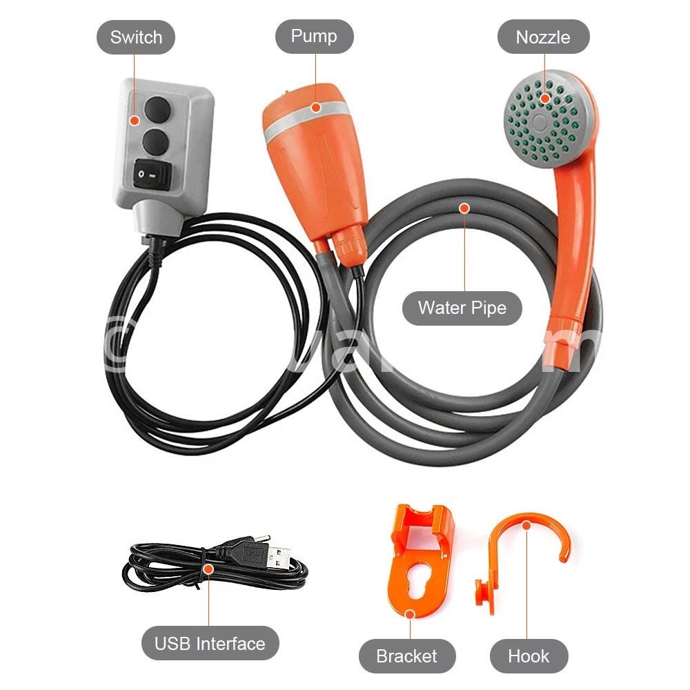 Tomshoo Portable Camping Shower Outdoor Camping Shower Pump Rechargeable Shower Head Outdoor Traveling Equipment Hiking Supplies