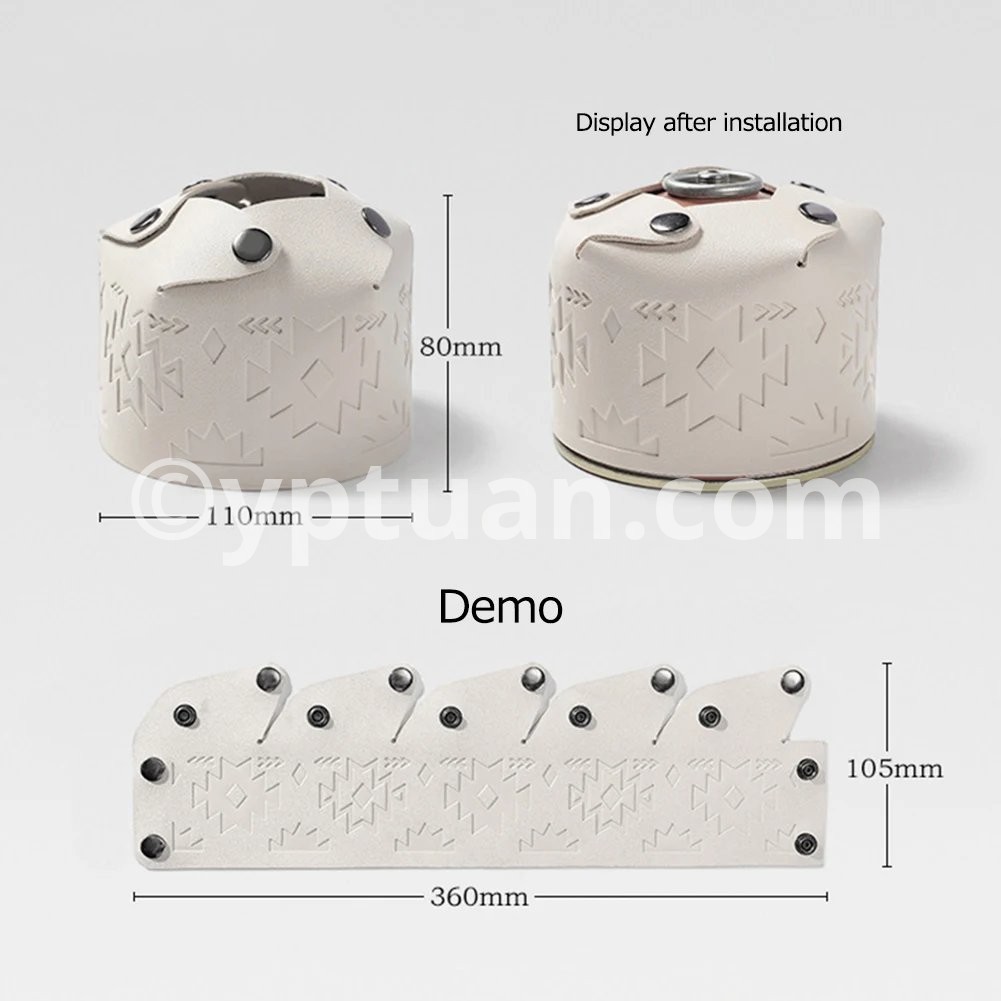 Gas Canister Protective Cover Bag Camping Fuel Cylinder Tank Leather Case Sleeve Hiking Travel Kit Outdoor Supplies Feature: 1. Material: Leather material, high-efficiency protection, high-quality leather is used, and suede fabric is used inside. 2. Easy installation: The installation is portable, one button is formed, and it can be used simply by using the snap button, and the installation is fast. 3. One-piece design: One-piece design, compact and portable. When not assembled, it will not take up a lot of space and is easy to carry. 4. Exquisite totem texture: Exquisite totem texture, enjoy exquisite outdoor life. 5. Suitable for scenarios: Outdoor camping gas cover protector.Gas tank protector can effectively protect gas cylinders.Specification: Origin: Mainland China Usage Condition: Normal Outdoor Structure: One-Piece Type: Gas Stove Model: Gas Tank Leather Case Material: Leather Color: beige Size: 360*105mm/14.2*4.2in (unfolded), 110*80mm/4.3*3.2in (assembly) Net weight: 31g Suitable for: air tank with diameter 11cm/4.3in and height 8cm/3.2inNote: Due to the different monitor and light effect, the actual color of the item might be slightly different from the color showed on the pictures. Thank you! Please allow 1-2cm measuring deviation due to manual measurement.