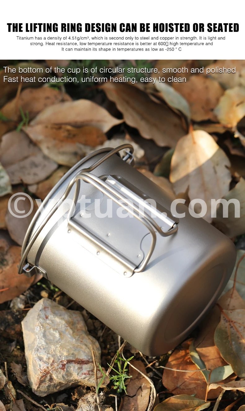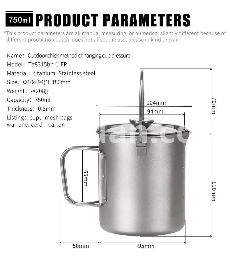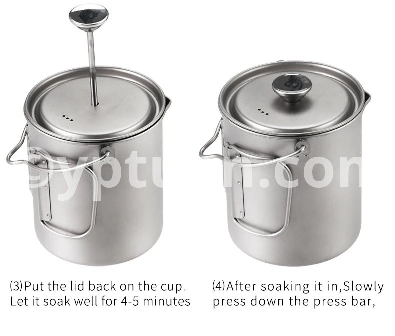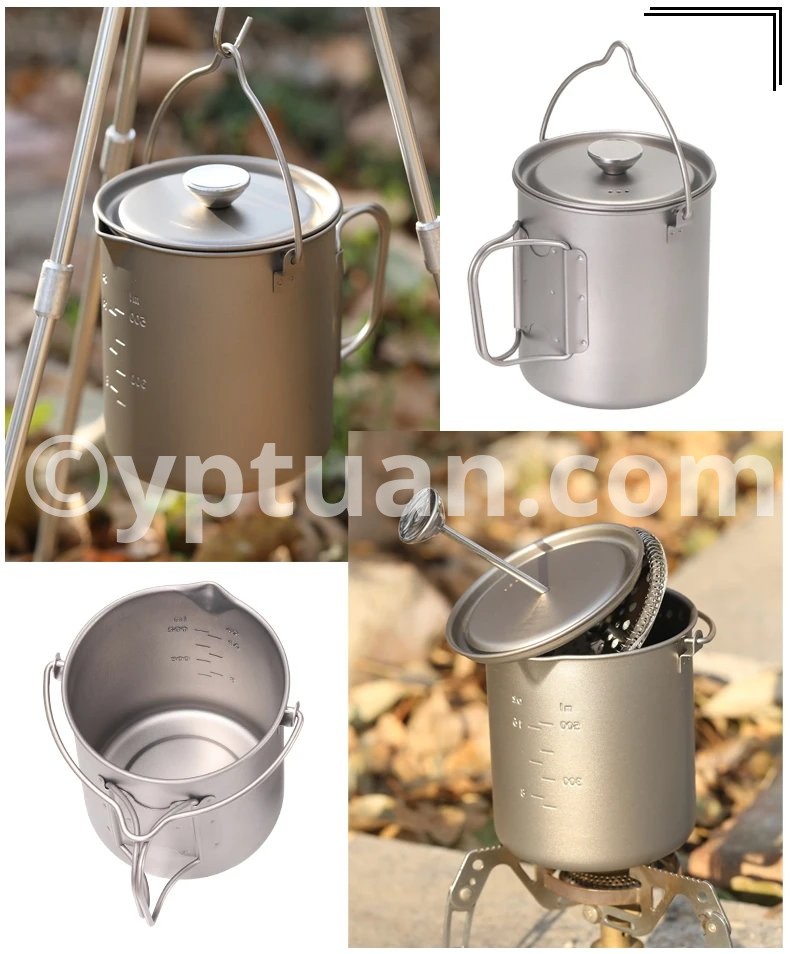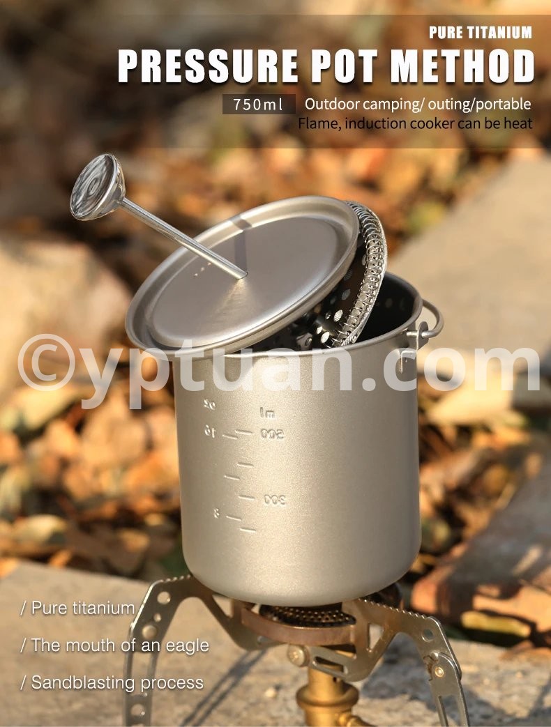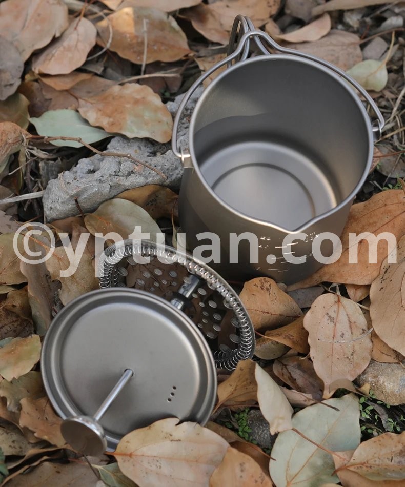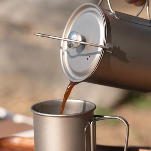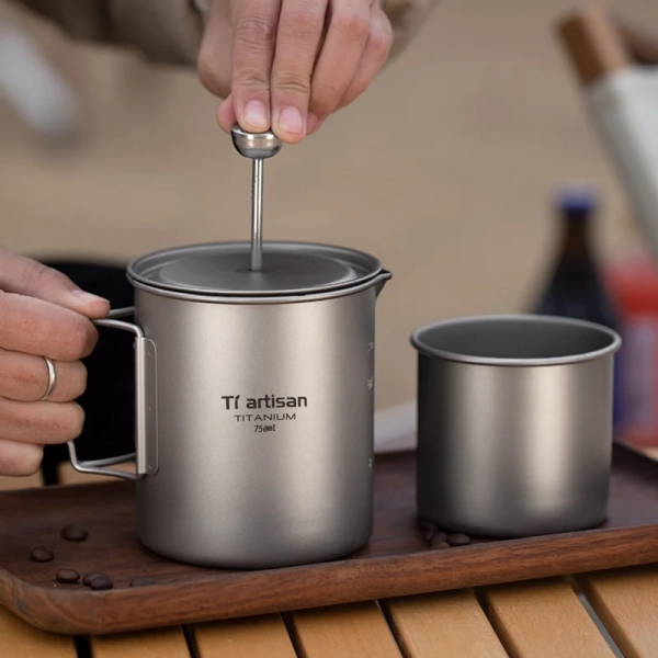 Tiartisan Titanium Folding Handle French Press Hanging Pot Coffee Maker With Lid Outdoor Camping Cookware Water Cup Mug