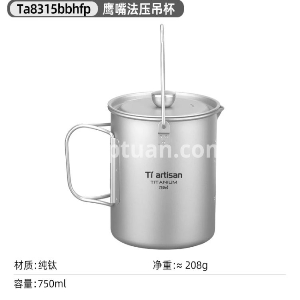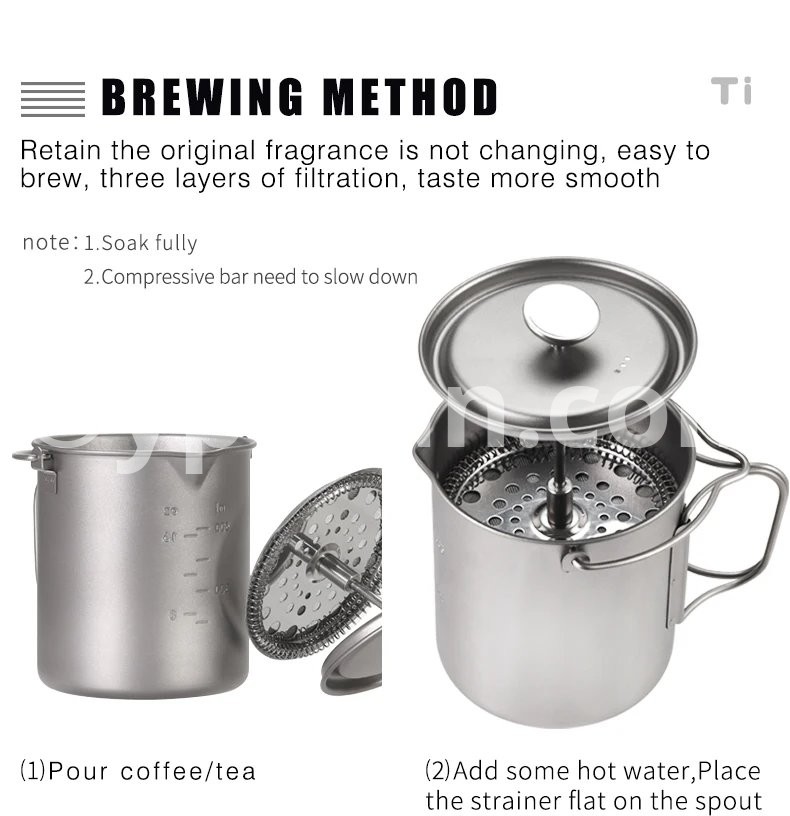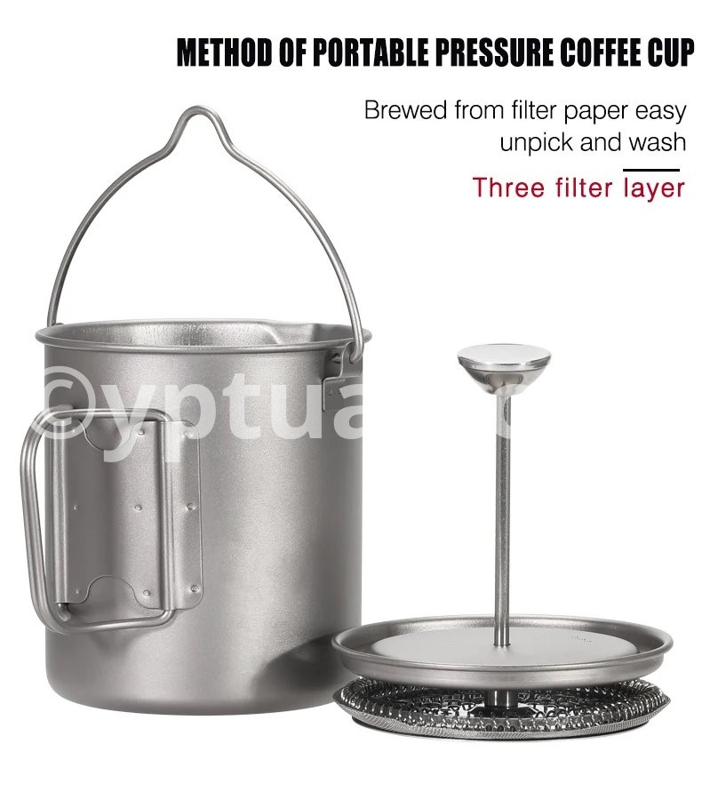 Tiartisan Titanium Ultralight French Press Cup Haning Pot Coffee Maker With Foldable Handle Portable Outdoor Picnic Backpacking Camping Equipment