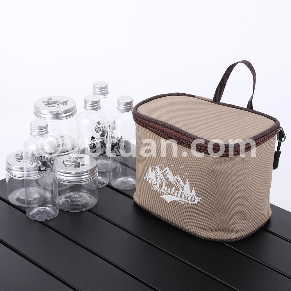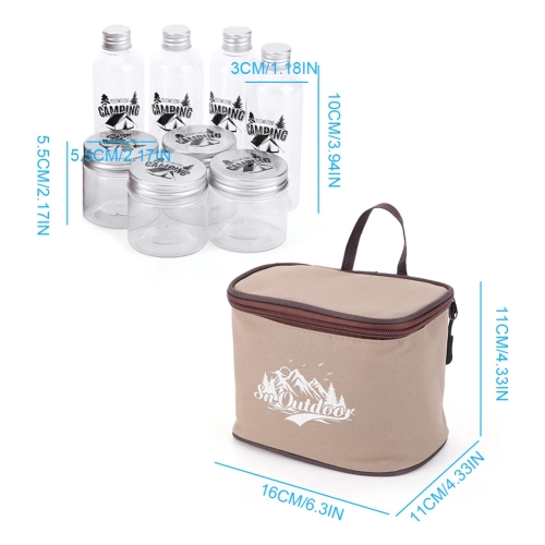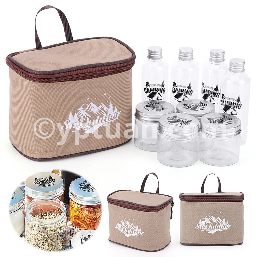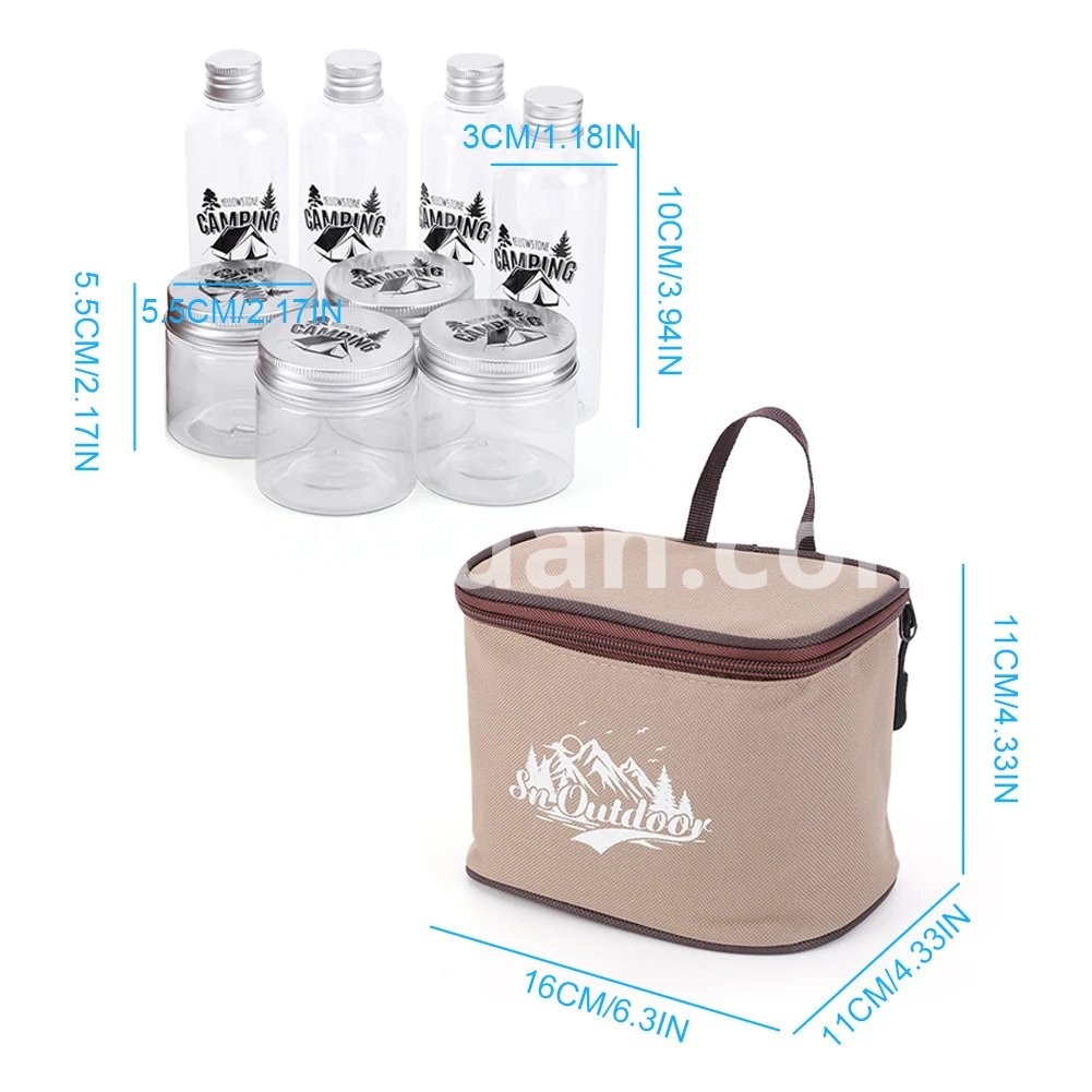 8Pcs Camping Seasoning Bottle Set with Storage Bag Portable Pepper Spice Storage Jars Set for Outdoor Travel Camping BBQ Picnic Feature: 1.Efficient Spice Organization: Our multipurpose seasoning containers are designed to help you effortlessly organize your spices, ensuring that your kitchen stays tidy and efficient. The set comes with a convenient storage bag that keeps everything neatly in place, making it easy to transport your spices to any cooking location. 2.Peace of Mind Usage: Enjoy using our spice containers without worry, thanks to their thoughtful design. The transparent construction allows you to quickly identify the contents, while the secure twist caps ensure that spices won't spill, even if the containers are accidentally knocked over or carried in a bag. 3.Durable and Long-Lasting Quality: Crafted from high-quality materials, our camping spice kit is built to withstand regular use and the rigors of travel. Their durability ensures they will remain a staple in your kitchen or camping gear for years to come, providing reliable service every time. 4.Versatile Application for Activities: The camping seasoning bottle set is not just limited to kitchen use; they are perfect for a wide range of activities such as picnics, road trips, and outdoor adventures. Their versatility allows you to bring your favorite spices wherever you go, enhancing your meals no matter the setting. 5.User-Friendly and Practical Design: The clear design of these spice bottles makes it easy to see what's inside at a glance, eliminating guesswork. The sturdy lids provide a tight seal to keep spices fresh and secure, combining practicality with ease of use to enhance your cooking experience both at home and on the go.Specification: Origin: Mainland China Bottle size: short bottle 5.5*5.5cm, tall bottle 10*3cm Storage size: 16*11*11cm Material: Plastic Note: Due to the different monitor and light effect, the actual color of the item might be slightly different from the color showed on the pictures. Thank you! Please allow 1-2cm measuring deviation due to manual measurement.