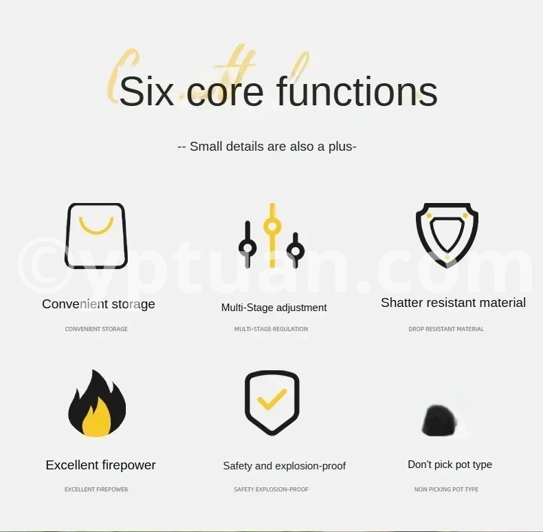 Adjustable knob: Multi level firepower adjustment, can be used for frying, brewing coffee, etc
