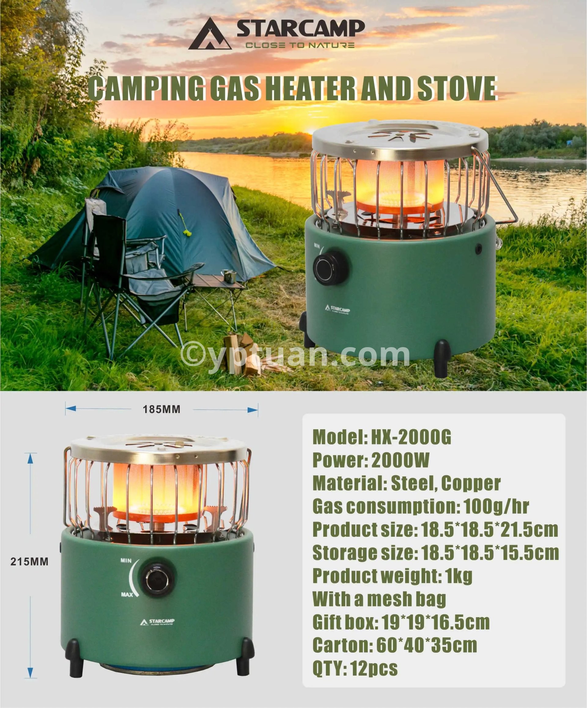 STARCAMP Portable Outdoor Camping Gas Heater & Stove 2 IN 1