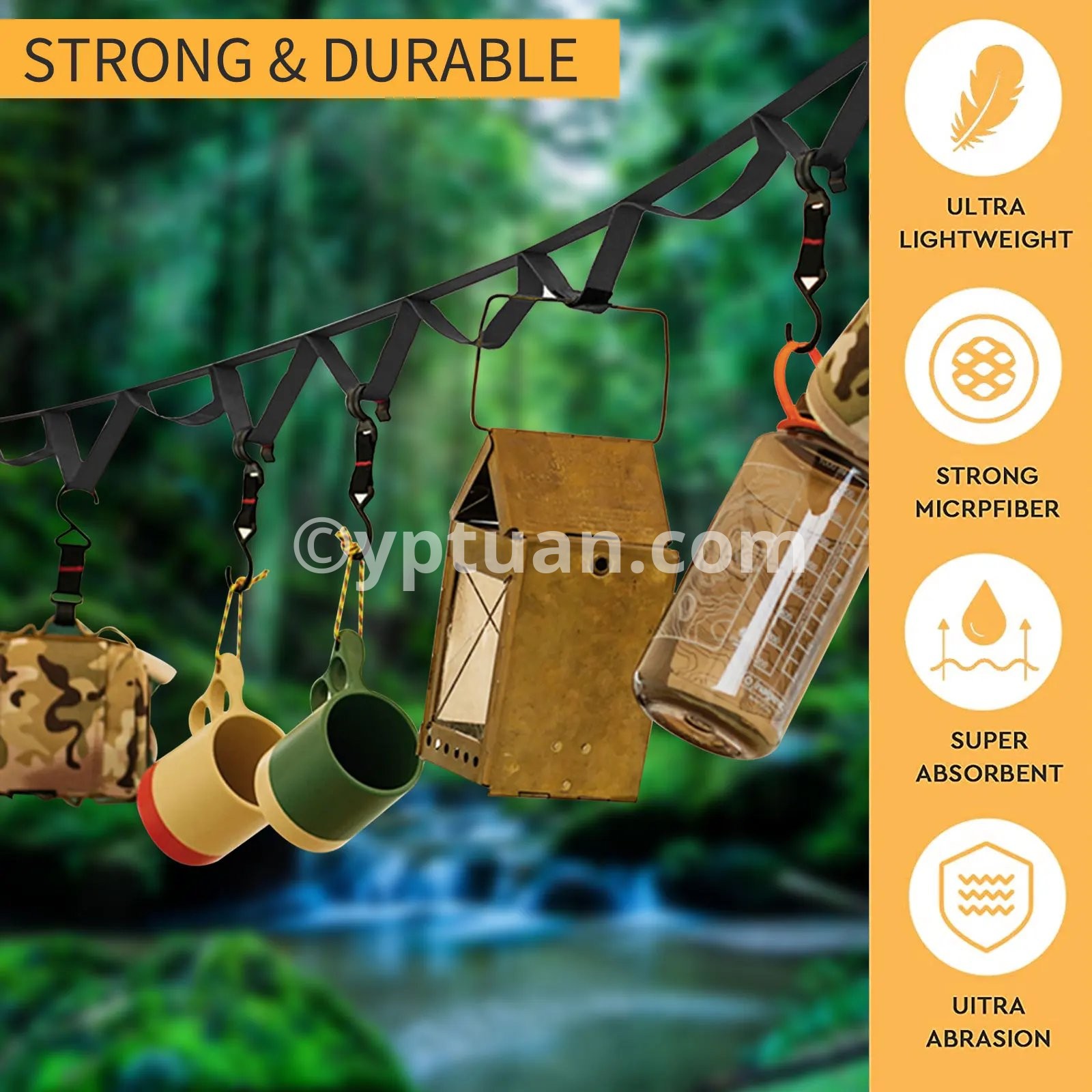 Camping Campsite Storage Strap, 1.8/5m Outdoor Hanging Rope, Portable Lanyard Hanger, Durable Campground Organizer for Hiking, Tent Accessories, Hanging Your Camping Gear Feature: For canopy hanging rope, multi-scene use, adjustable length. It can also be used as a windbreak rope, and both are equipped with fixed objects. Specification: Brand: SUNDICK Item: Multifunctional hanging rope Material: 2.0cm fine woven belt Color: Black, Khaki, Rose Red, Army Green, Dark Grey Size: (short) 1800mm*20mm*5mm/71in*0.79in*0.2in (long) 5000mm*20mm*5mm/197in*0.79in*0.2in Net weight: (short) 48g (long) 116g Gross weight: (short) 48g (long) 116g Note: Due to the different monitor and light effect, the actual color of the item might be slightly different from the color showed on the pictures. Thank you! Please allow 1-2cm measuring deviation due to manual measurement.