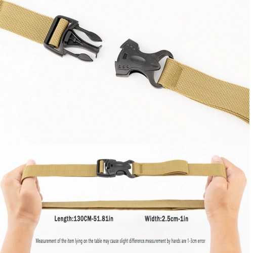 Strap Width: 1". Total Length: 53". You can adjust the length. Single stiching on the the fixed buckle, for more convenient adjustment. If you still think it's too long, you could cut out some of it to get the length you need.