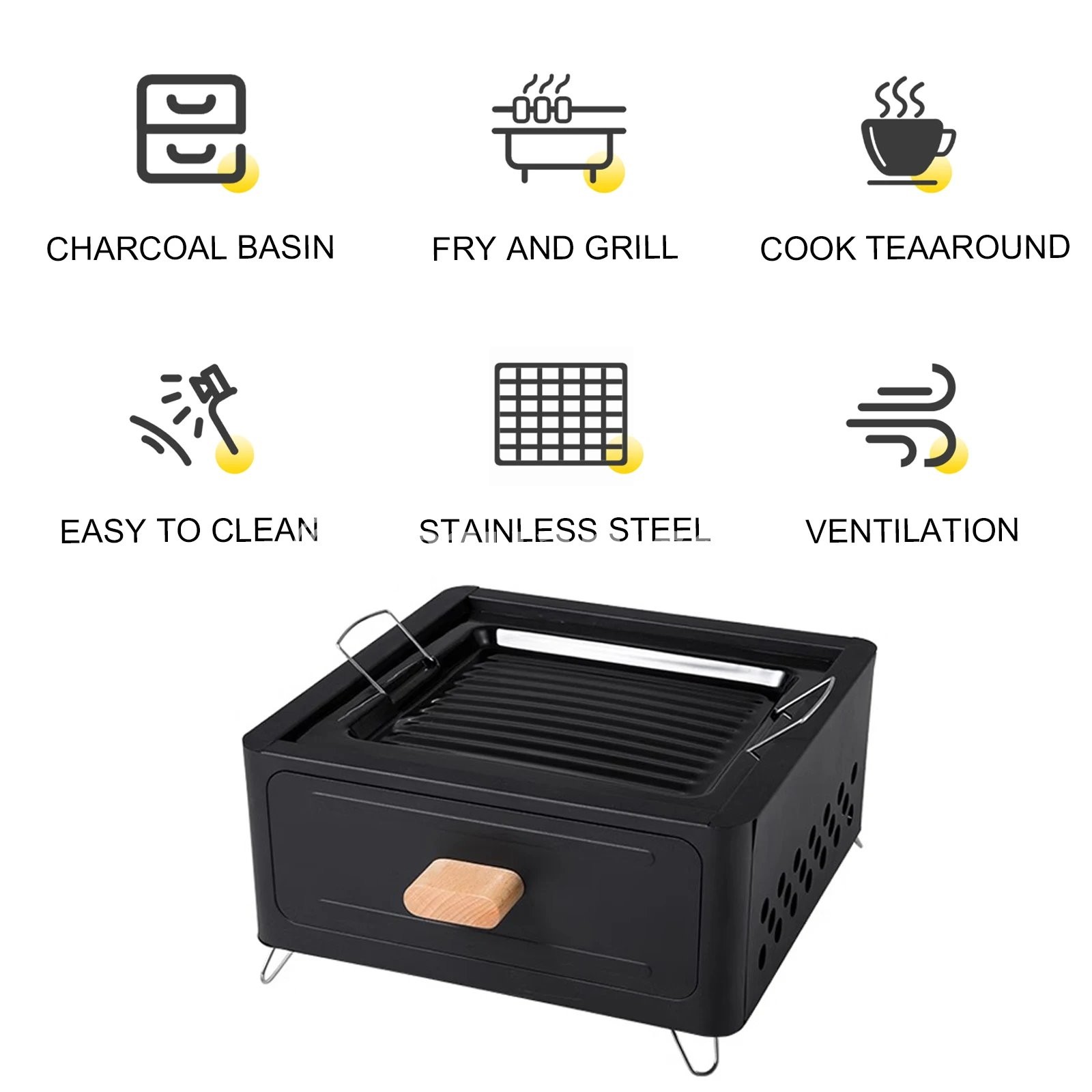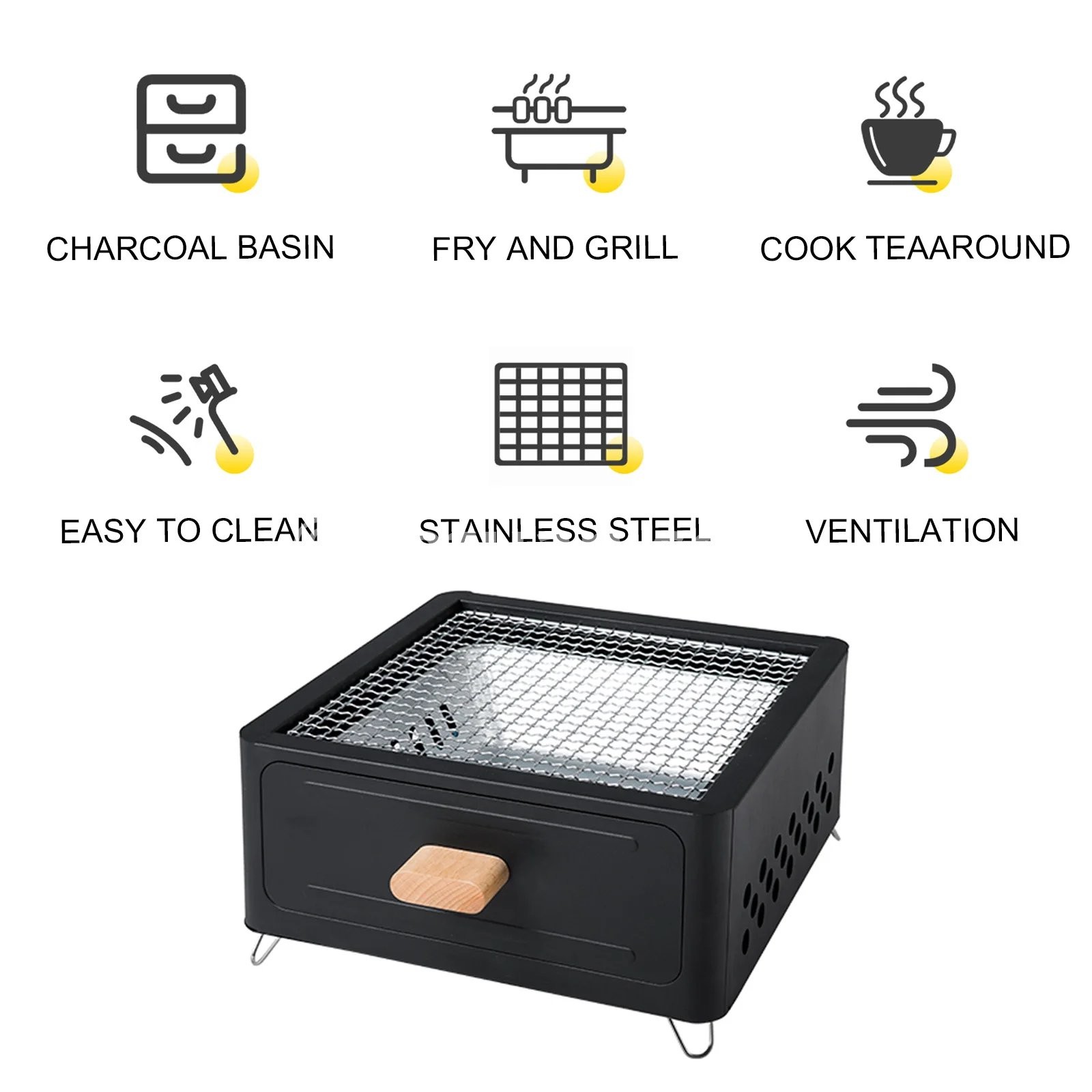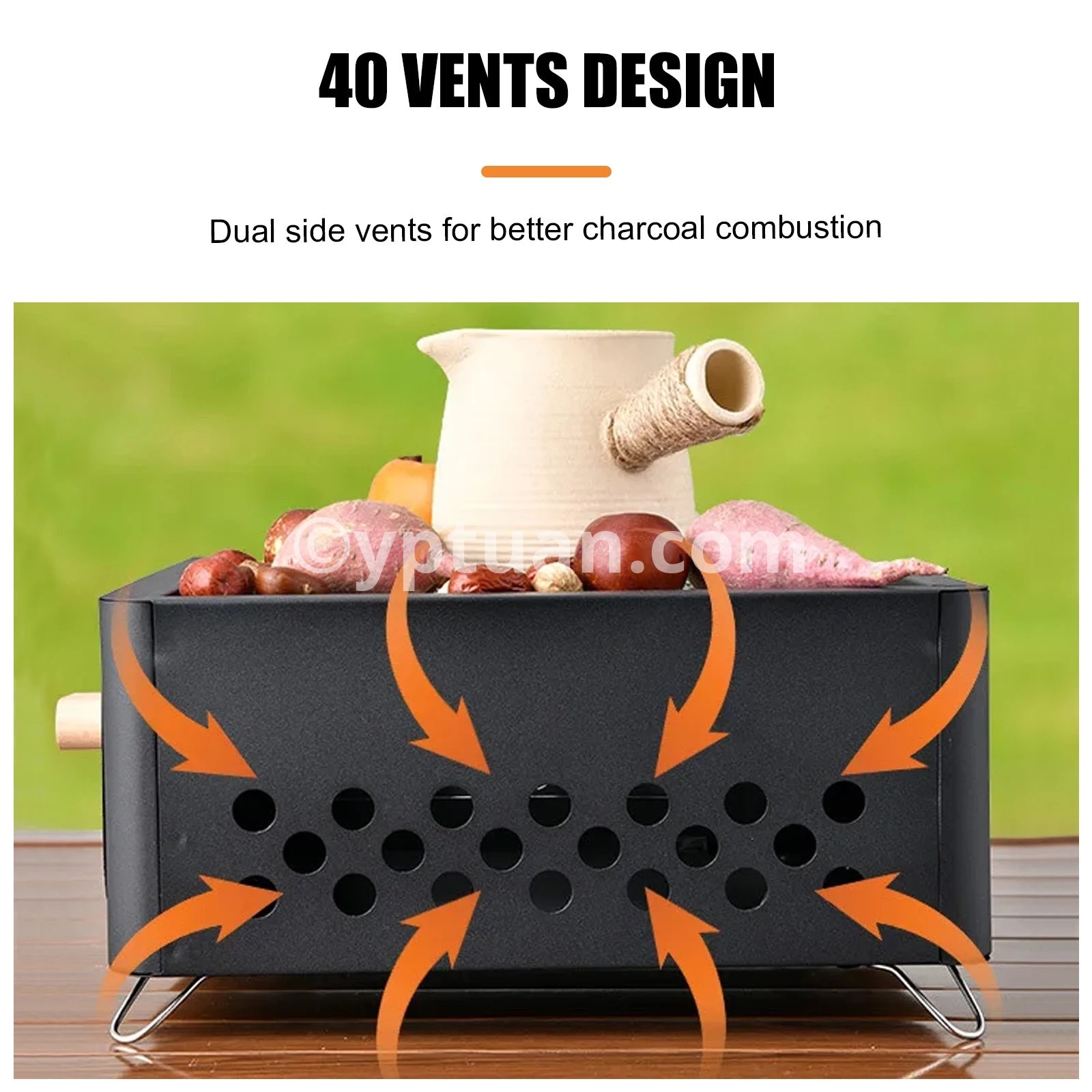 Multi-Functional Charcoal Grill - Perfect for grilling both meats and vegetables. You could use this charcoal grill to cook tea and hot pot too, even use it as a stove to warm indoor or outdoor.