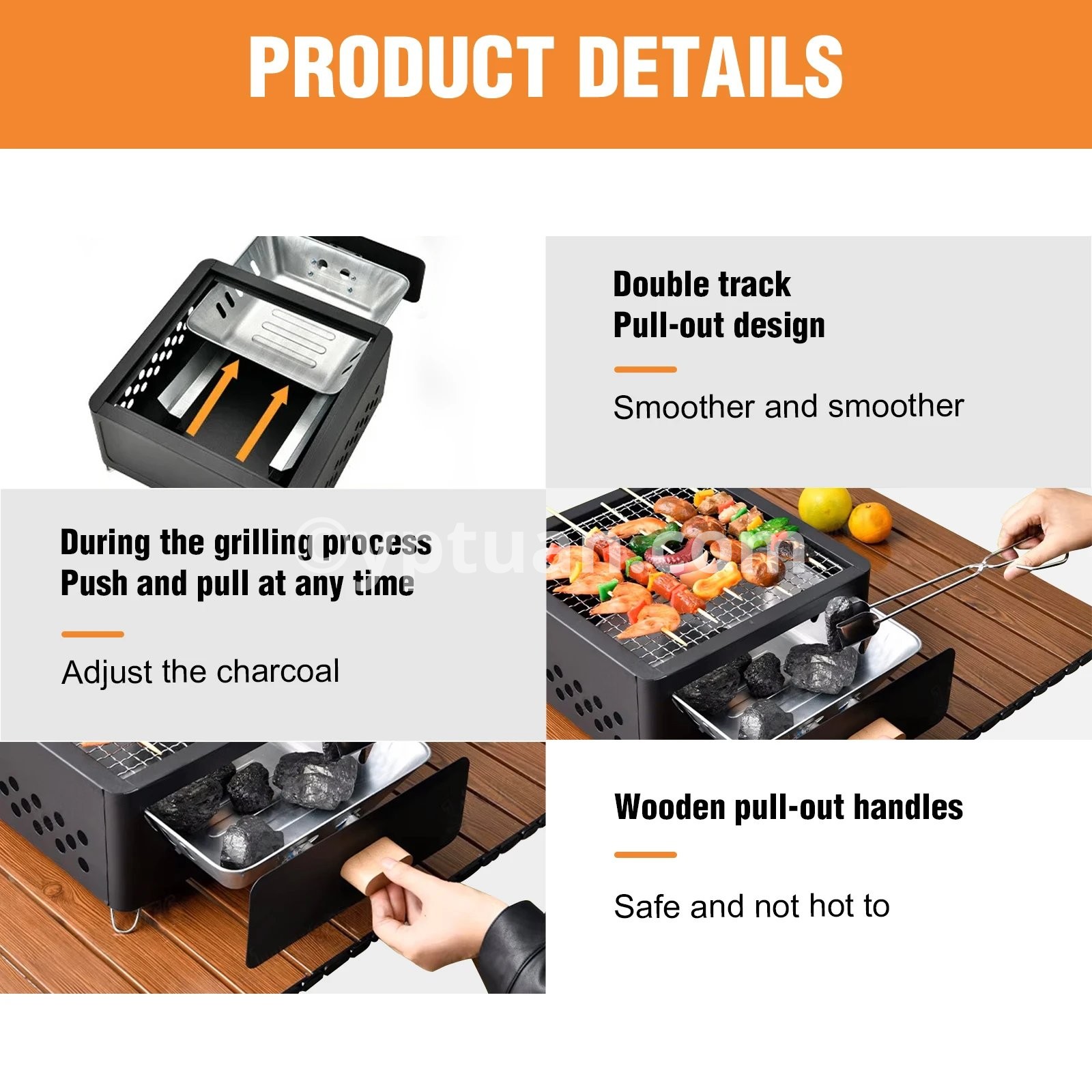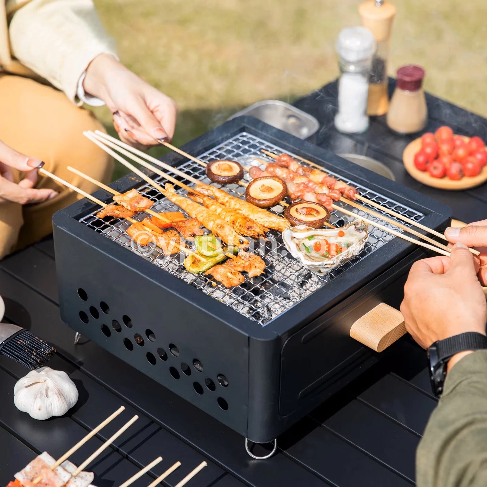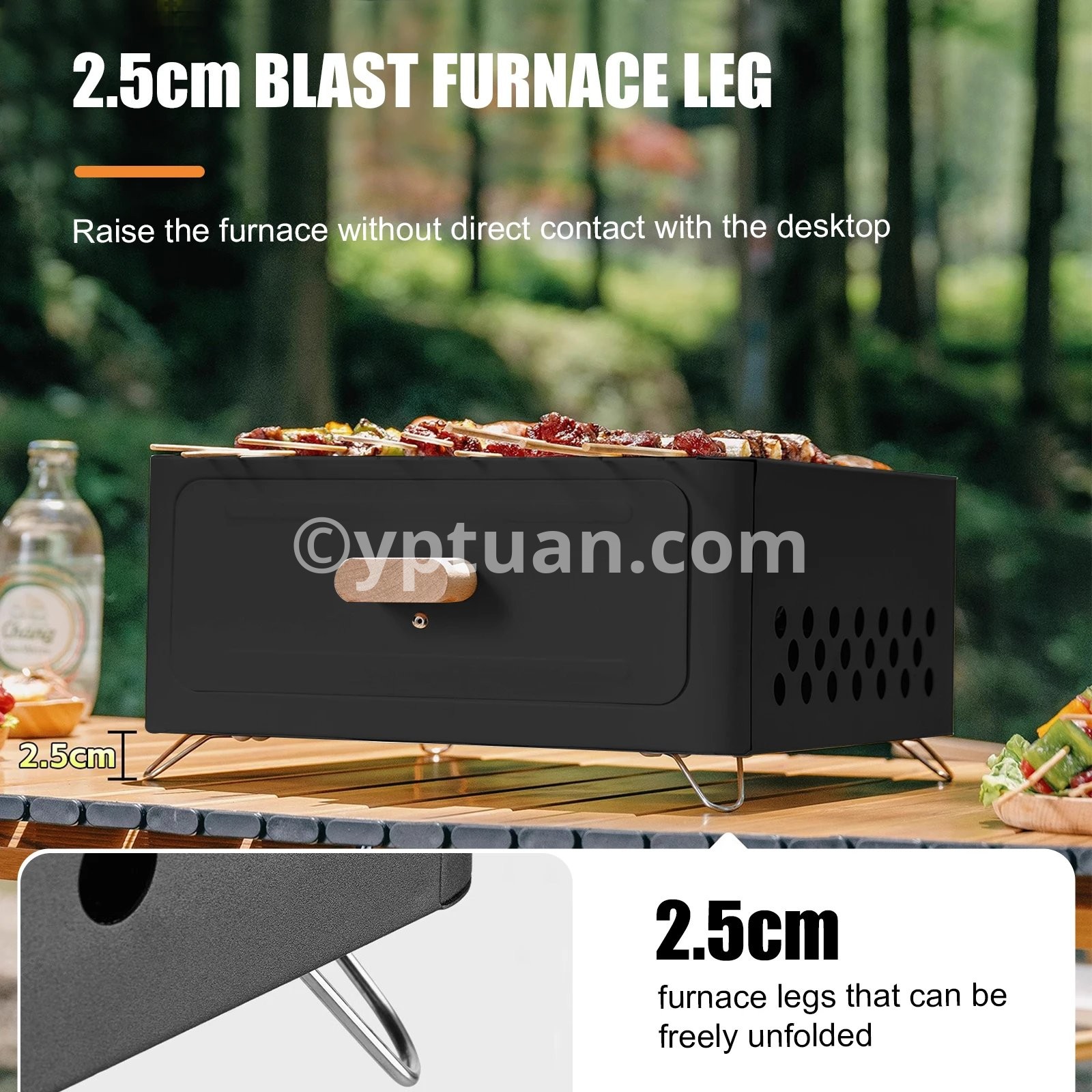 Folding Grill For Camping - The portable camping grill is with four foldable legs. This structure makes the small portable grill more stable when placing on the table top. Folding legs will be easy to store when not use.