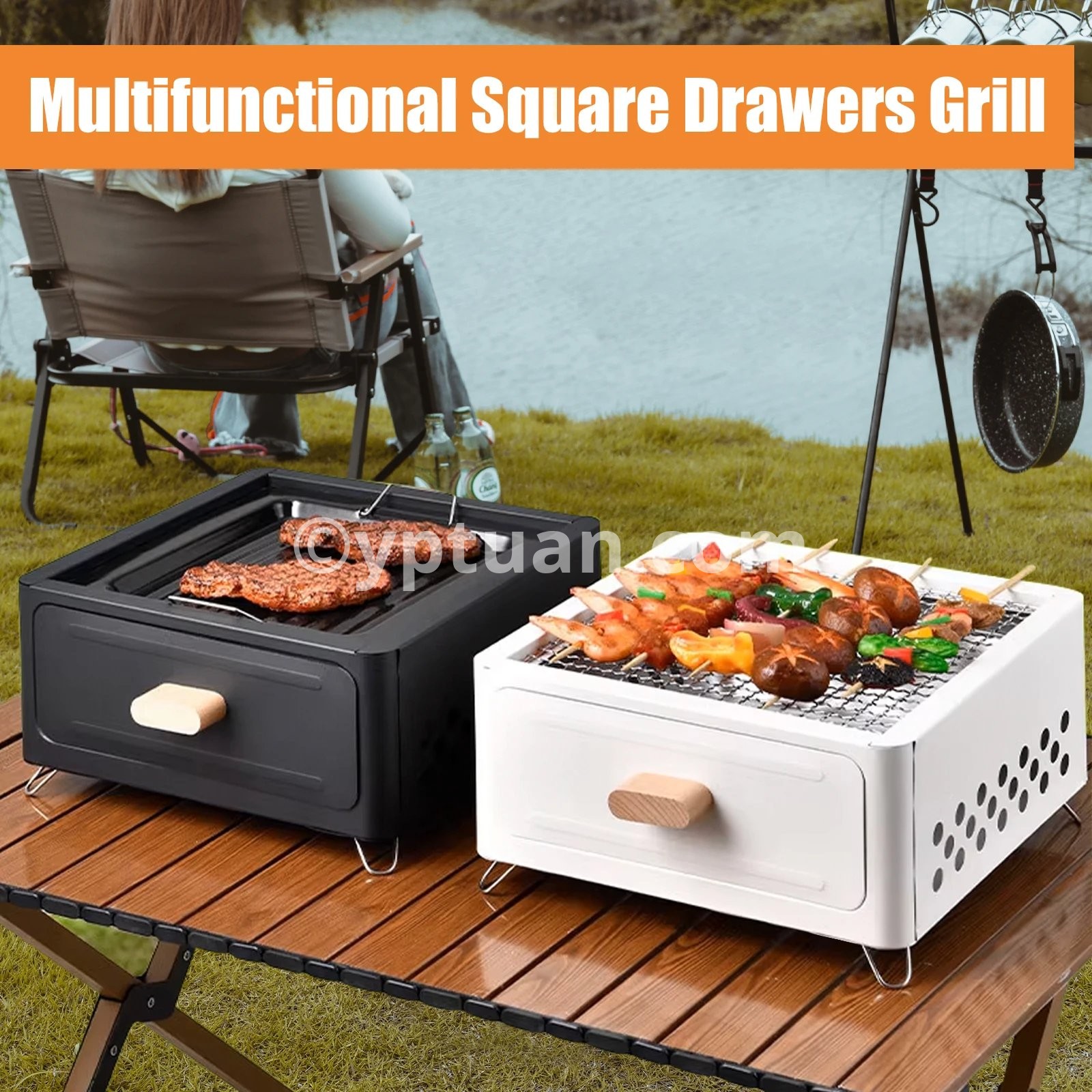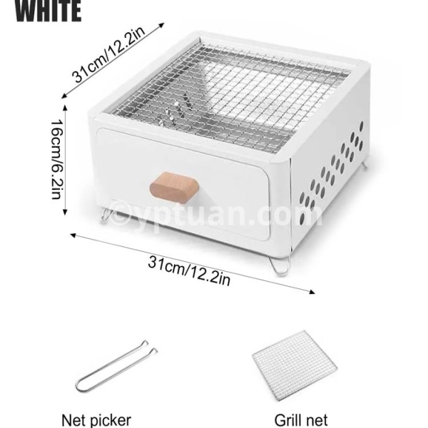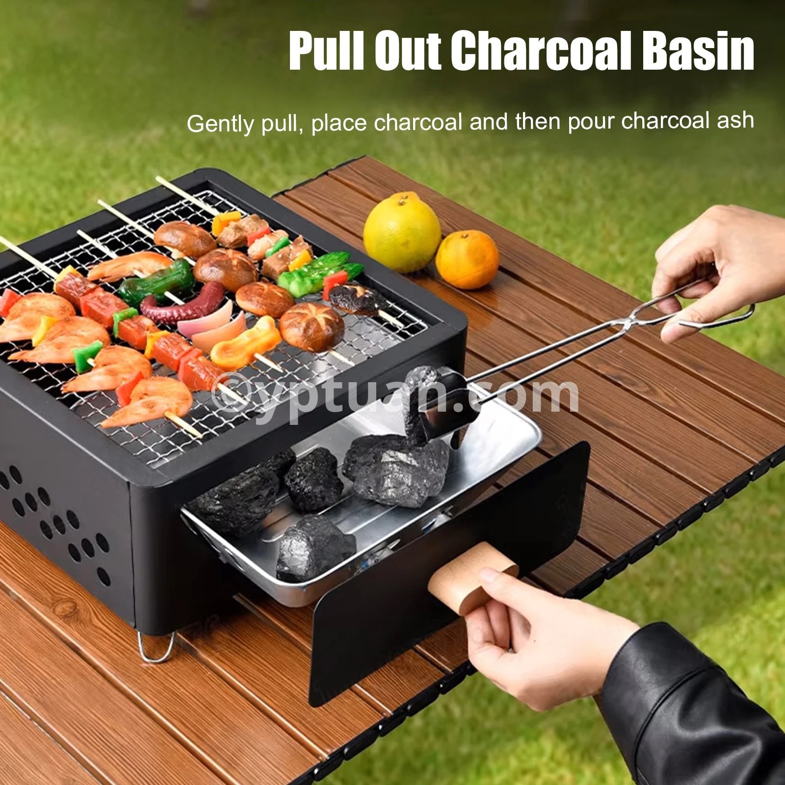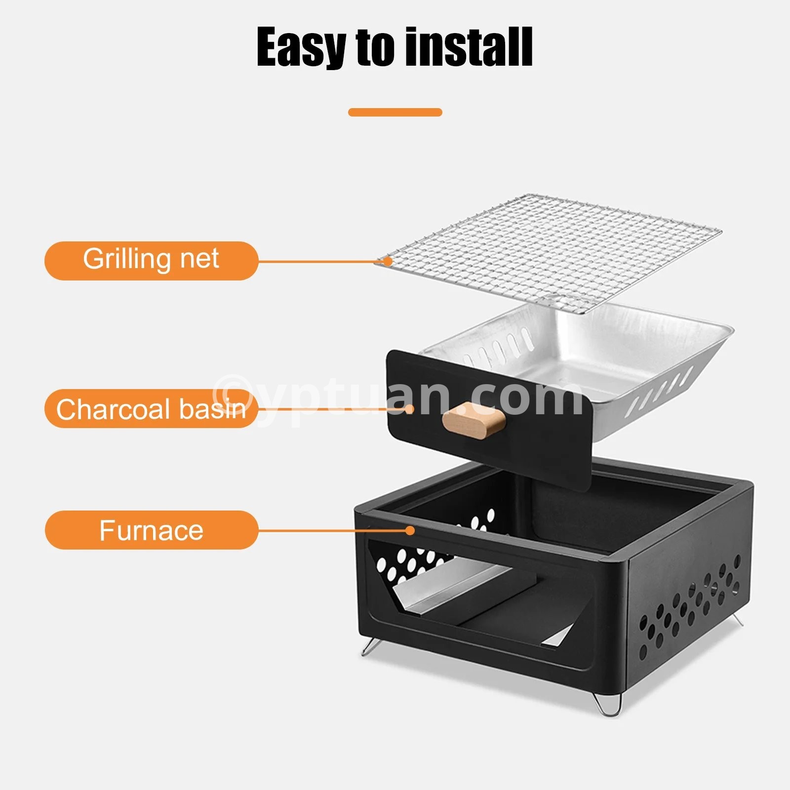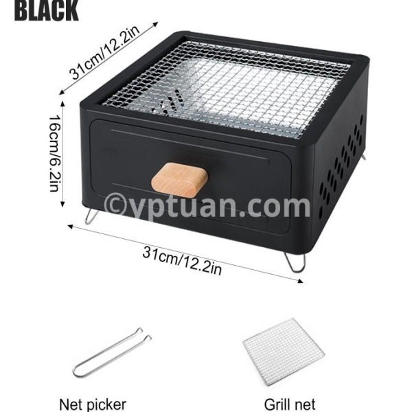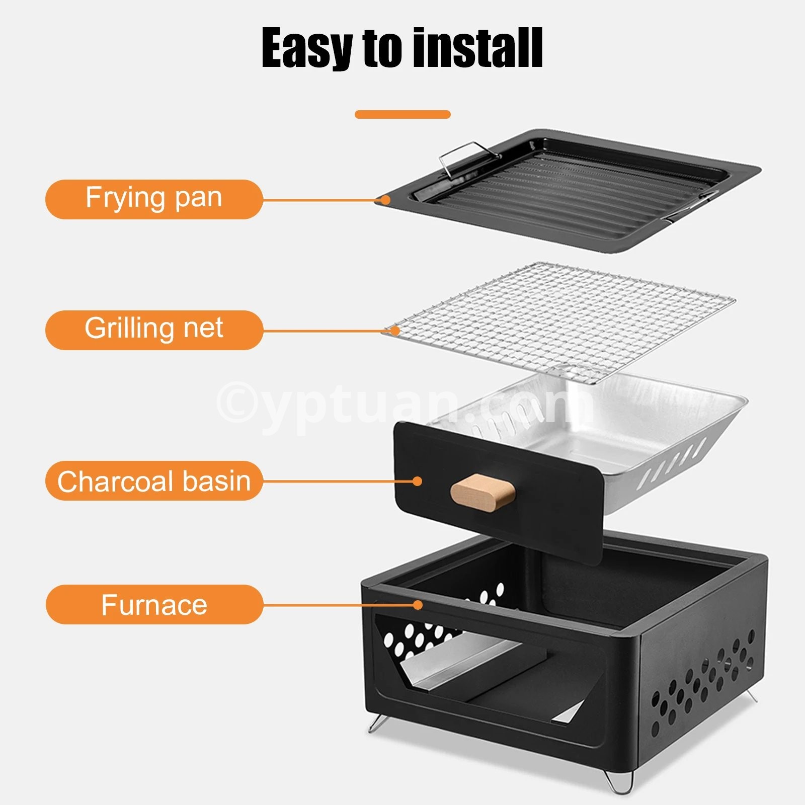 Portable barbecue Grill - The small portable grill size is 12.2''L x 12.2''W x 5.1''H. Provide barbecue anywhere and anytime you want, whether it's camping, backyard or patio. You could conveniently put the mini BBQ grill in the trunk or fit in your camping cart.