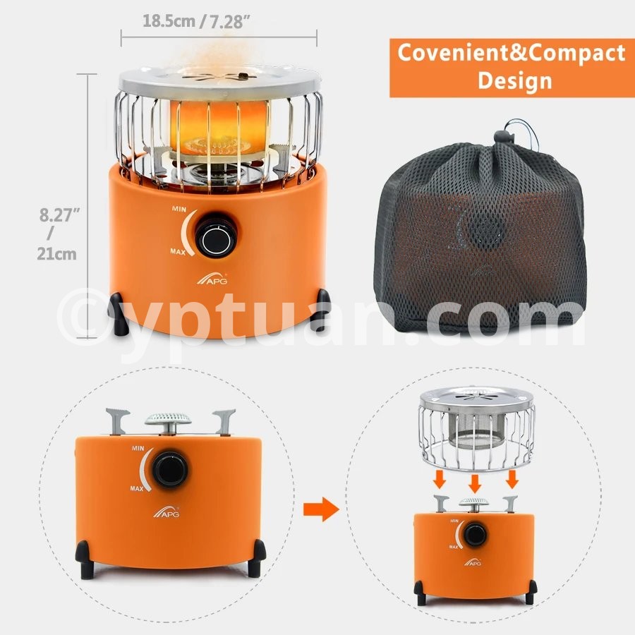 3.Safe and Reliable:The heating stove is safe and reliable. Put on the heating hood, it is the heater, and if removing it, is the camping stove.