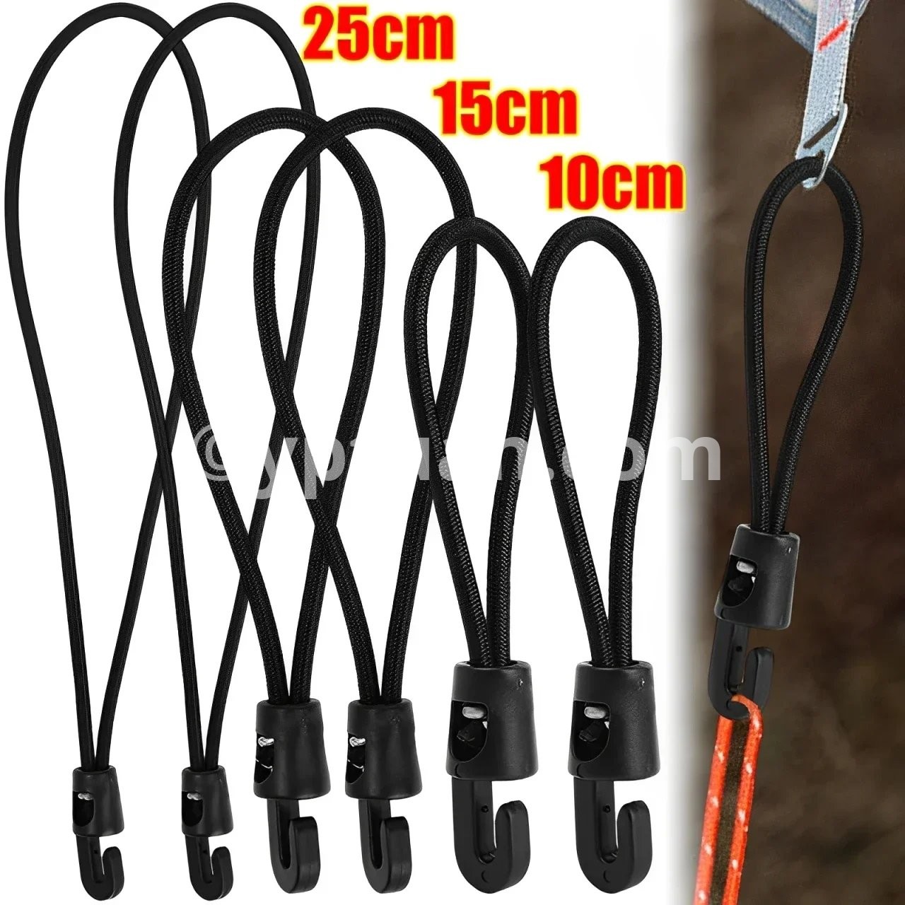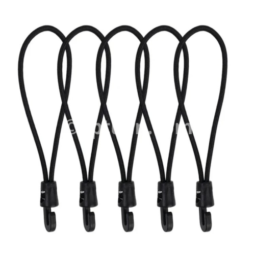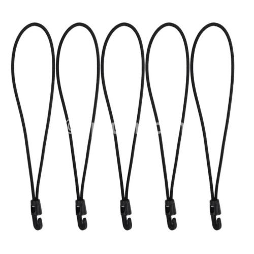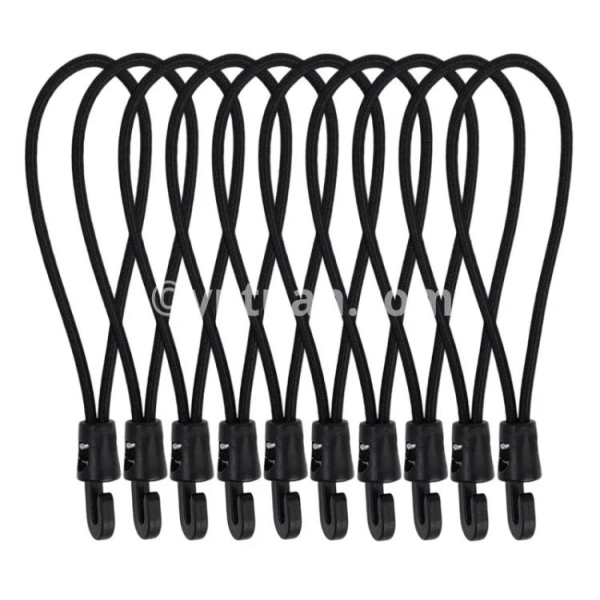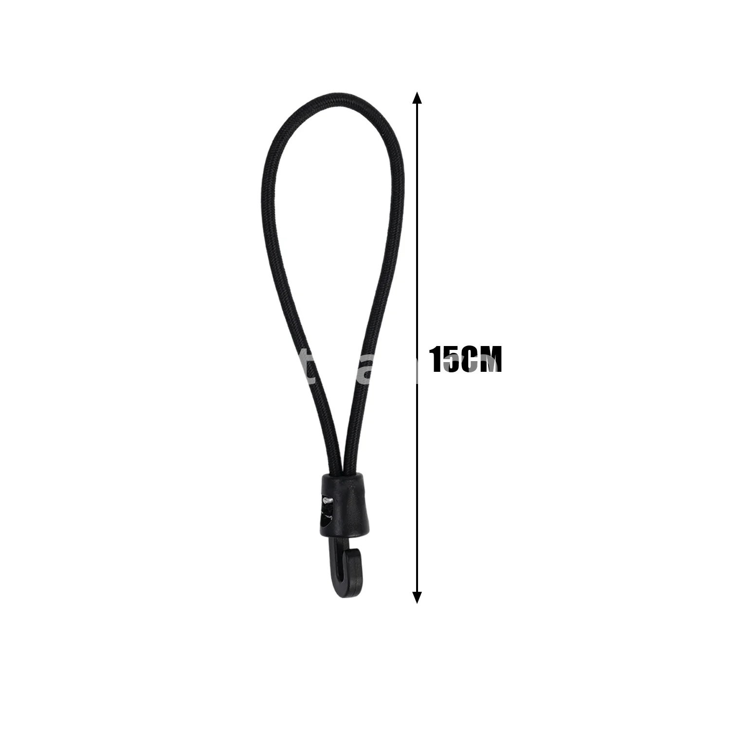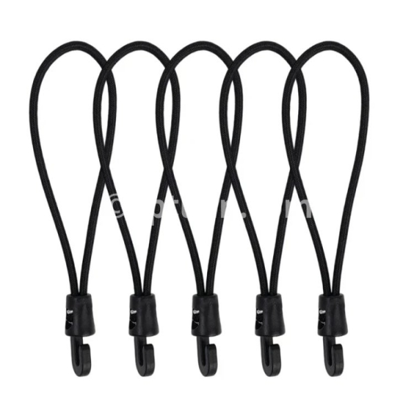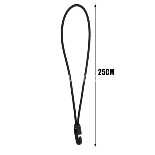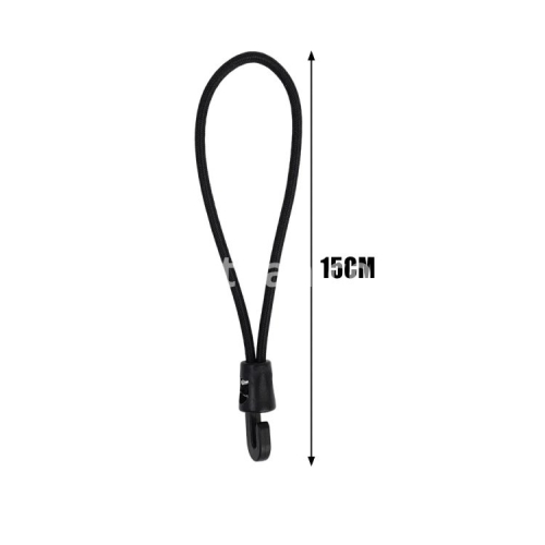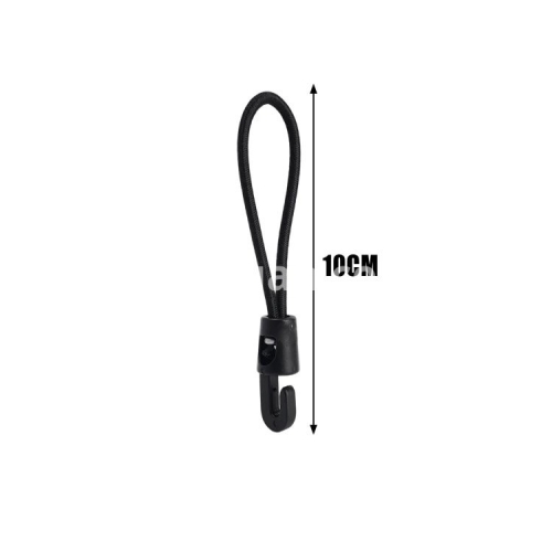 Specifications: 1. Material: Nylon 2. Size: 10cm, 15cm, 25cm 3. Color: Black 4. Applicable: Trekking poles, flashlights, keys, water bottles, maps, etc. 5. Features: Multi-purpose, super elastic, durable, compact and portable 6. Package includes: 1/5/10* elastic rope