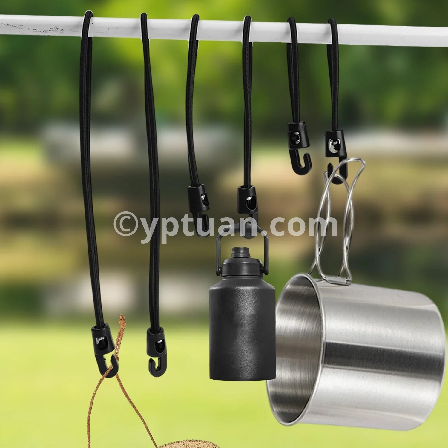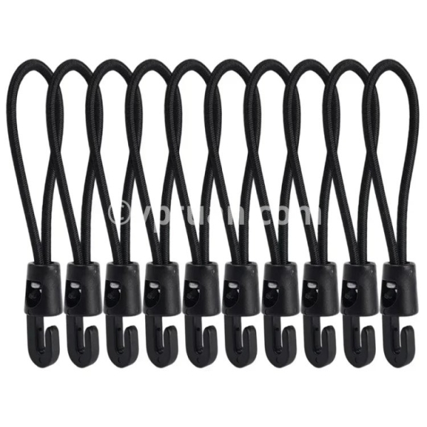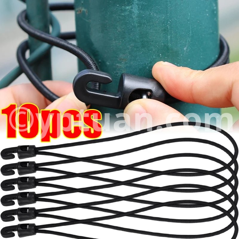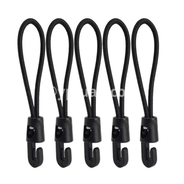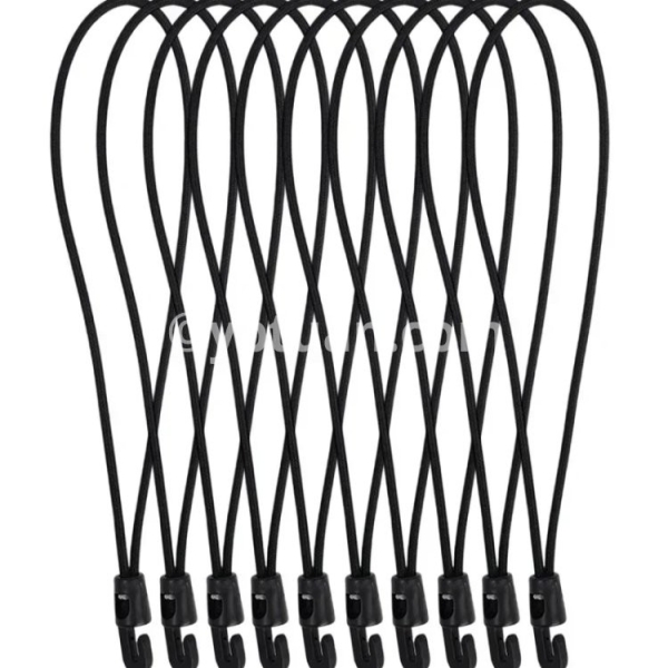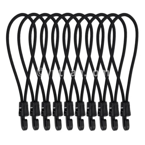 Specifications: 1. Material: Nylon 2. Size: 10cm, 15cm, 25cm 3. Color: Black 4. Applicable: Trekking poles, flashlights, keys, water bottles, maps, etc. 5. Features: Multi-purpose, super elastic, durable, compact and portable 6. Package includes: 1/5/10* elastic rope