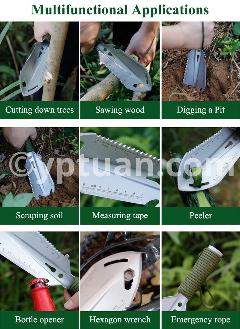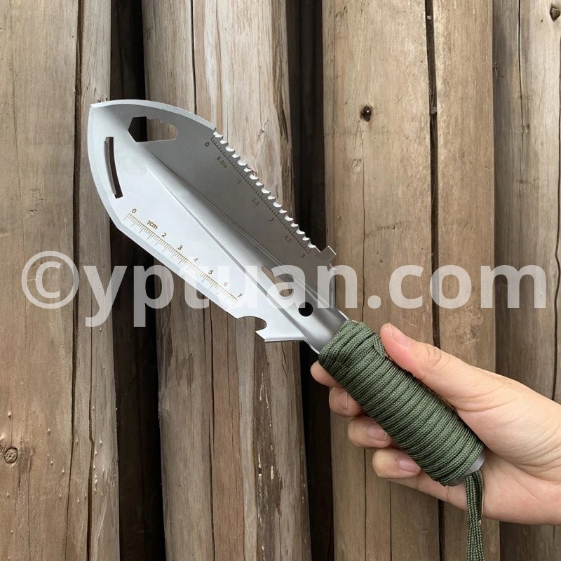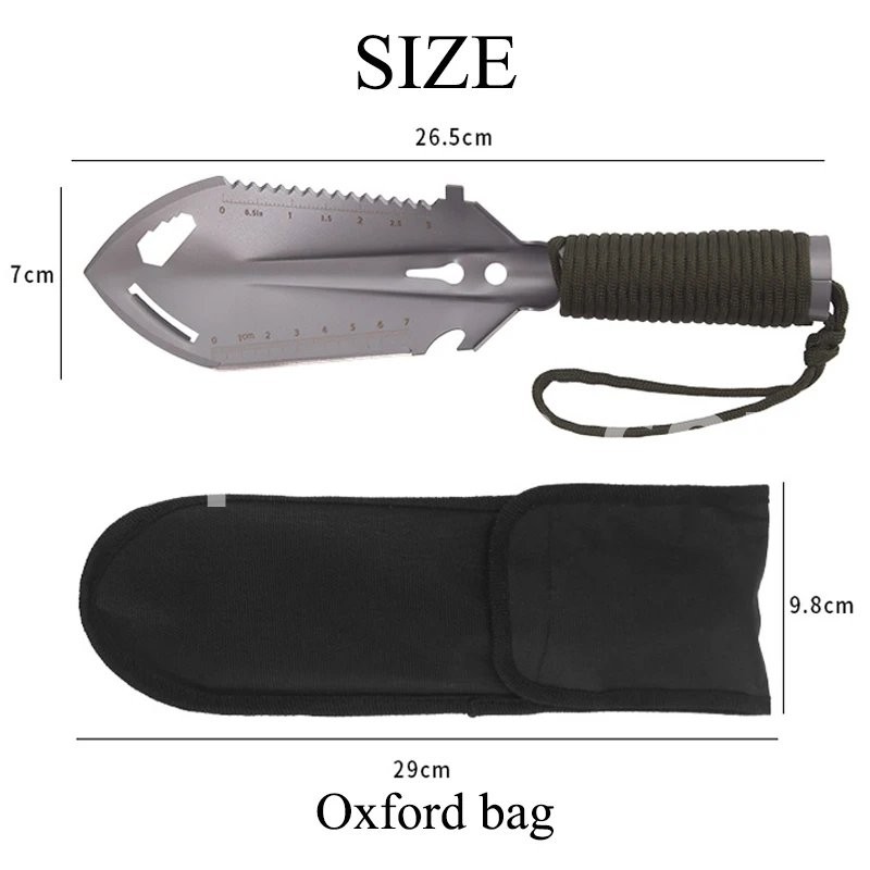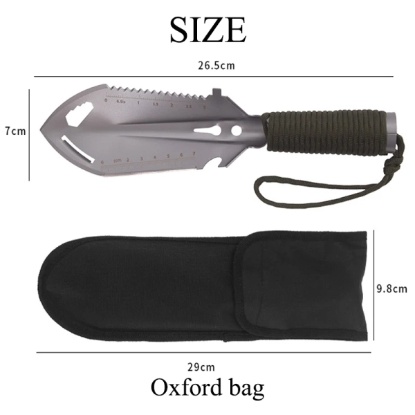 Description: 1. High quality stainless steel materials are selected and crafted with precision technology, which are corrosion-resistant, wear-resistant, and durable. 2. Paired with Oxford cloth storage bag, it can easily store backpacks or in the car without taking up space. 3. The streamlined handle conforms to ergonomics and is not tiring to use for a long time, allowing you to easily set off anytime, anywhere. 4. A versatile shovel that combines multiple functions such as a nail clipper, ruler, saw, hex wrench, bottle opener, cutting edge, measuring ruler, peeler, etc. It is a great helper for your outdoor exploration. Specification: Product Name: Camping Shovel Material: Stainless steel Color: Black; white Size: As shown in the picture Features: Multifunctional tool; Durable Style: Minimalism Package Included: 1PC Camping Shovel 1PC Oxford Cloth Storage Bag Note: -Due to hand measure, the size may have 1-2 cm error. -Due to Different Monitor, the color may have difference. -Due to long shipping, the item may damage in transit, if the item damage, pls contact us firstly immediately before leave feedback,IFANYUO thanks for your understanding.