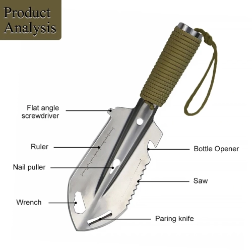 Portable Camping Engineer Shovel Outdoor Stainless Steel Multi-functional Tool Small Hand Shovel Field Survival Emergency Shovel