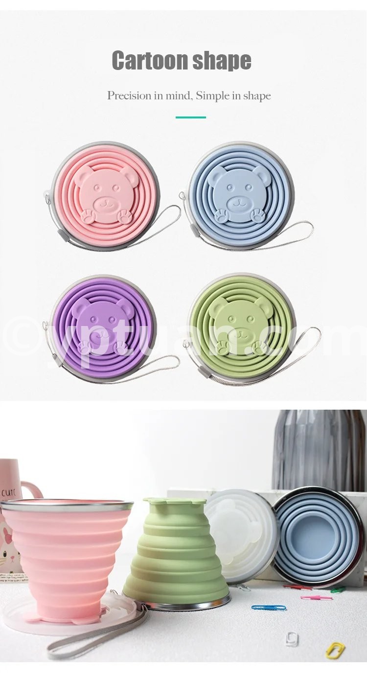 180ML Portable Silicone Folding Water Cup Outdoor Heat Resistant Foldable Mug With Lid Collapsible Travel Drinking Cups