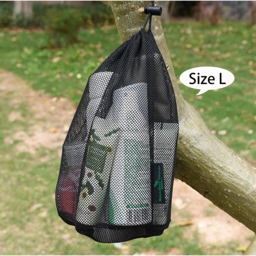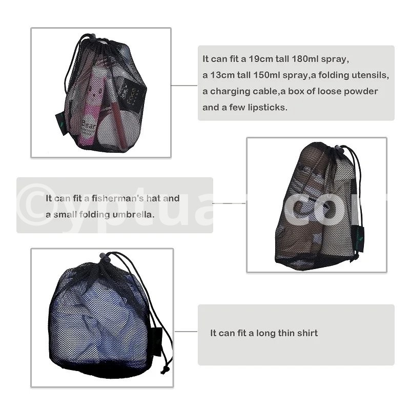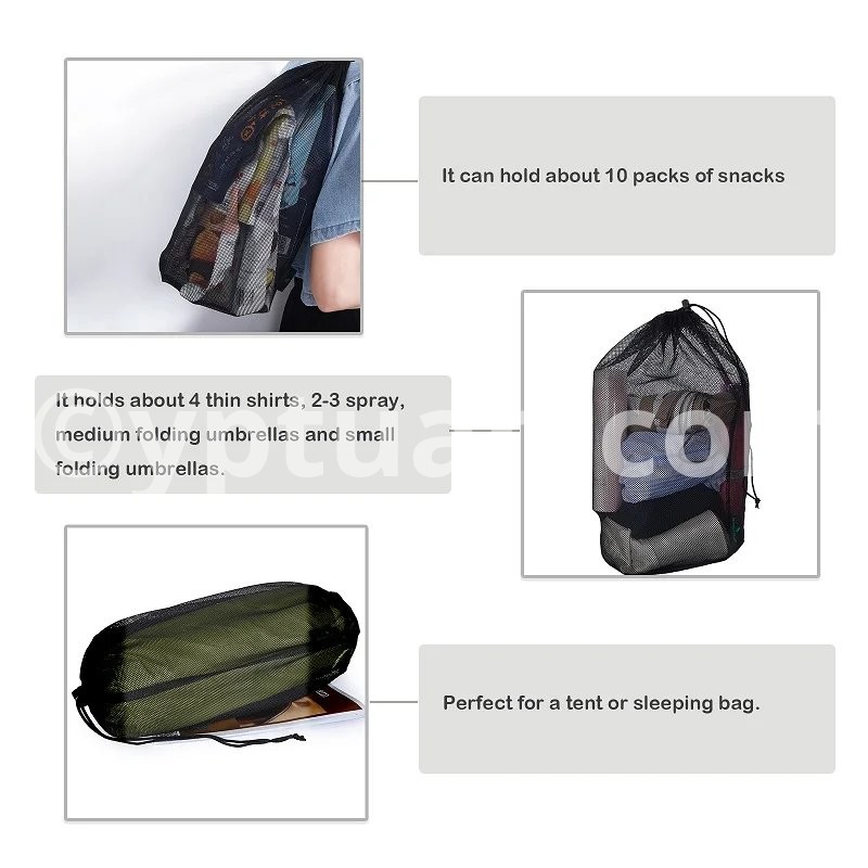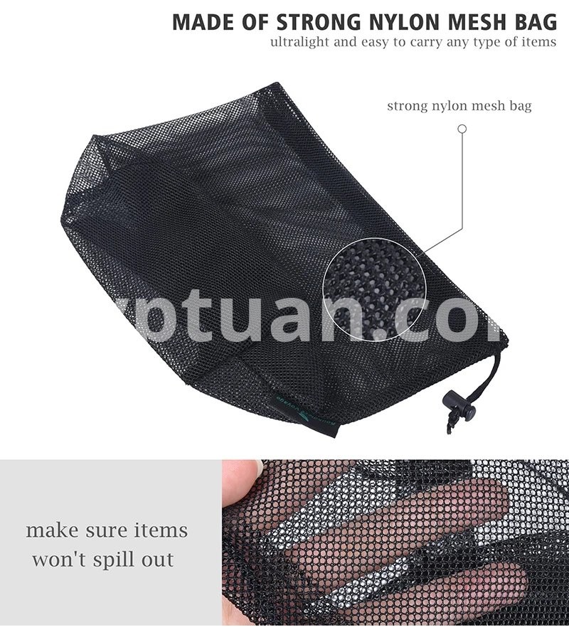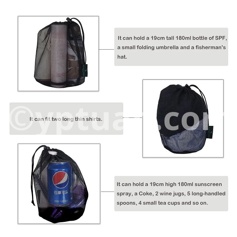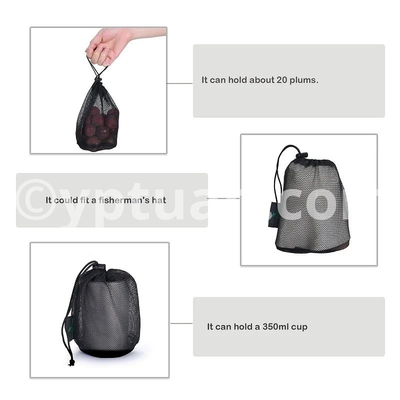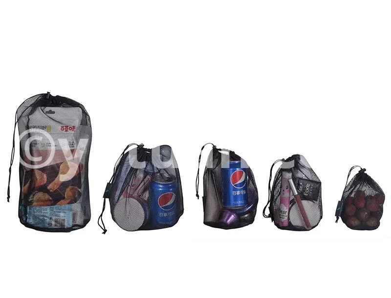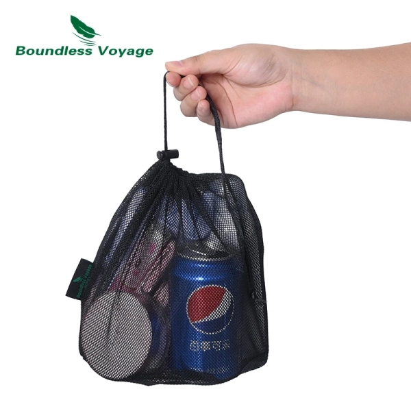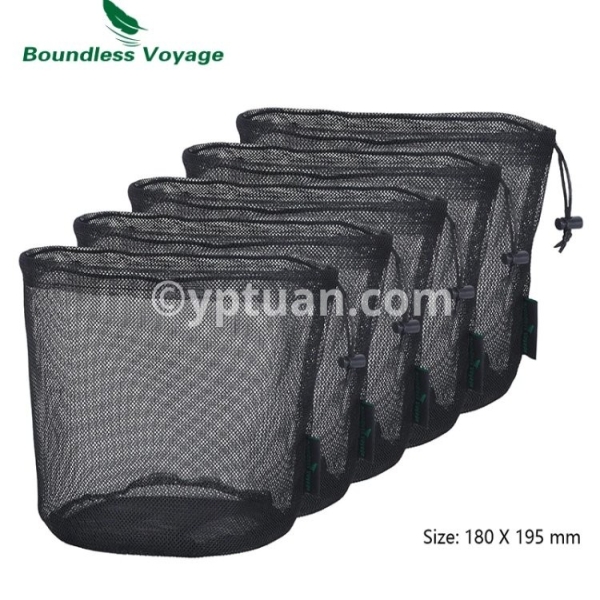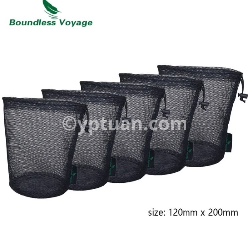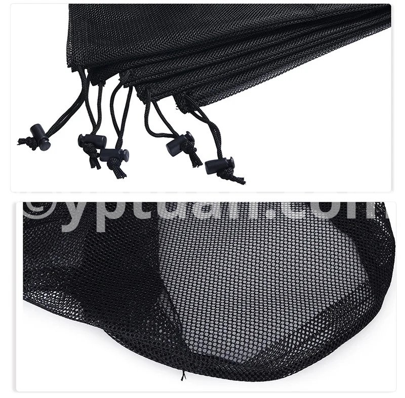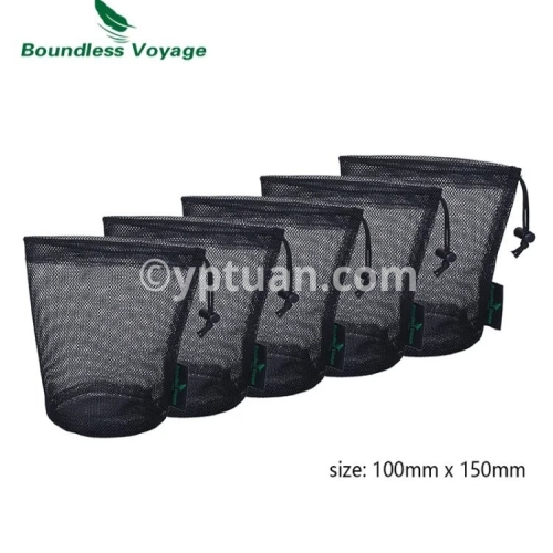 Boundless Voyage 5pcs Black Nylon Mesh Bag Gym Drawstring Net Bag Travel Stuff Sack for Cookware Outdoor Tools Storage Ditty Bag