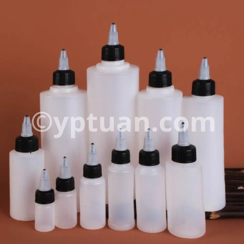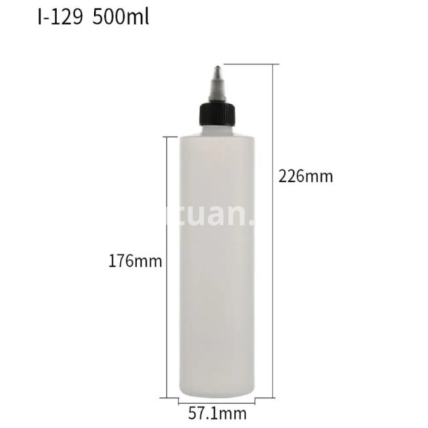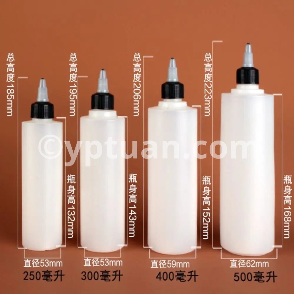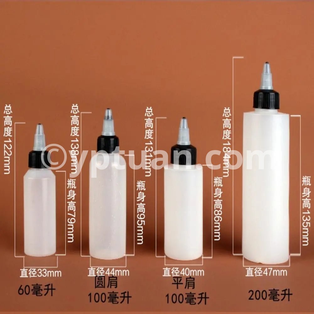 Material: PE Color: Transparent Capacity: 30ML/60ML/250ML/500ML Heat resistance: 80 ℃ (bottle body), 60 ℃ (bottle mouth) Packing:1PC Oil Bottle Features: Made from food grade PE material, BPA & PVC free, odor proof. Twist-on cap lids for easy controlling of the pouring speed. Clear, transparent body allows you to find what you need at a glance. Wide opening design, convenient to refill and clean. Best for soy sauce, oil, vinegar, dressing, cooking wine, alcohol, etc.