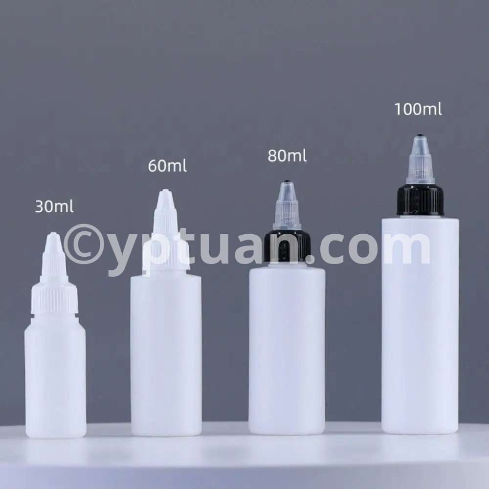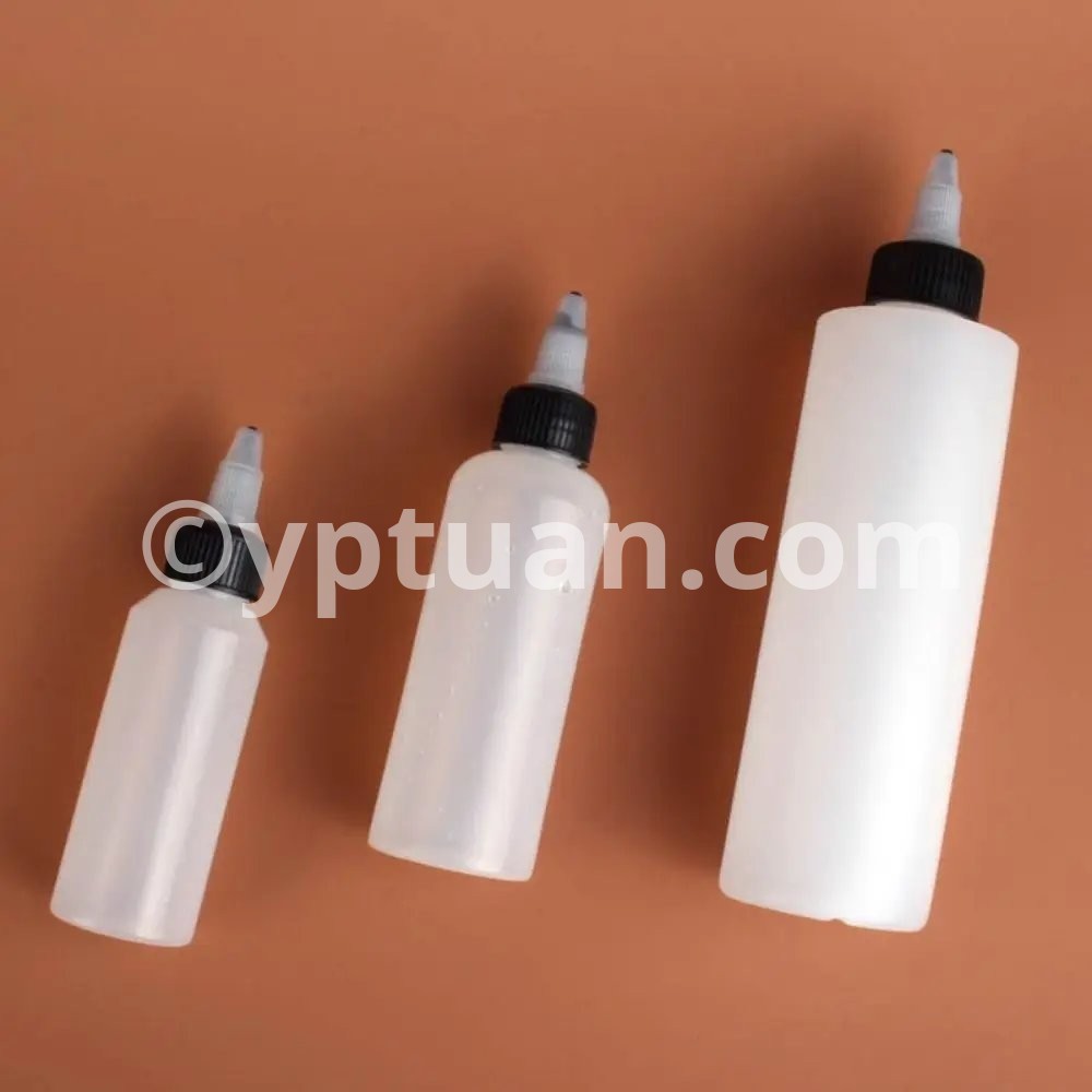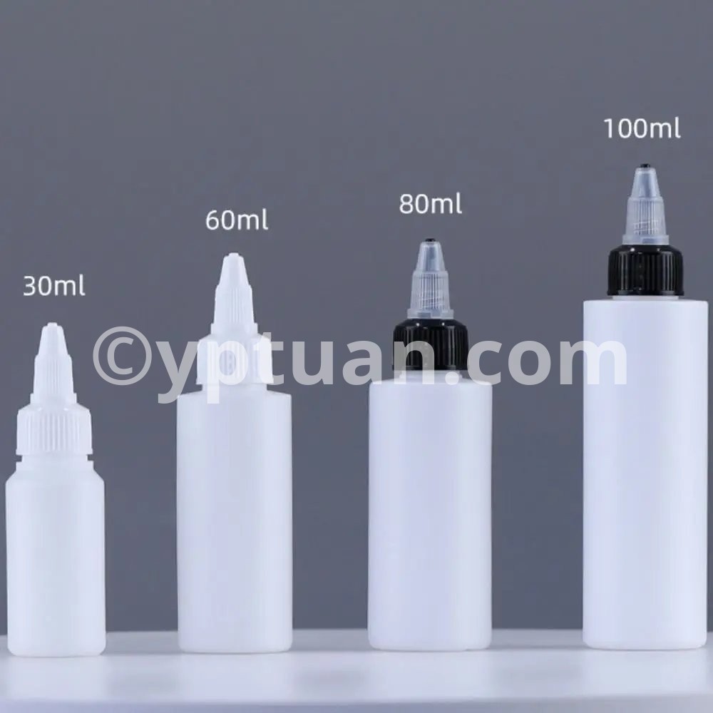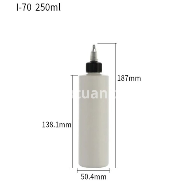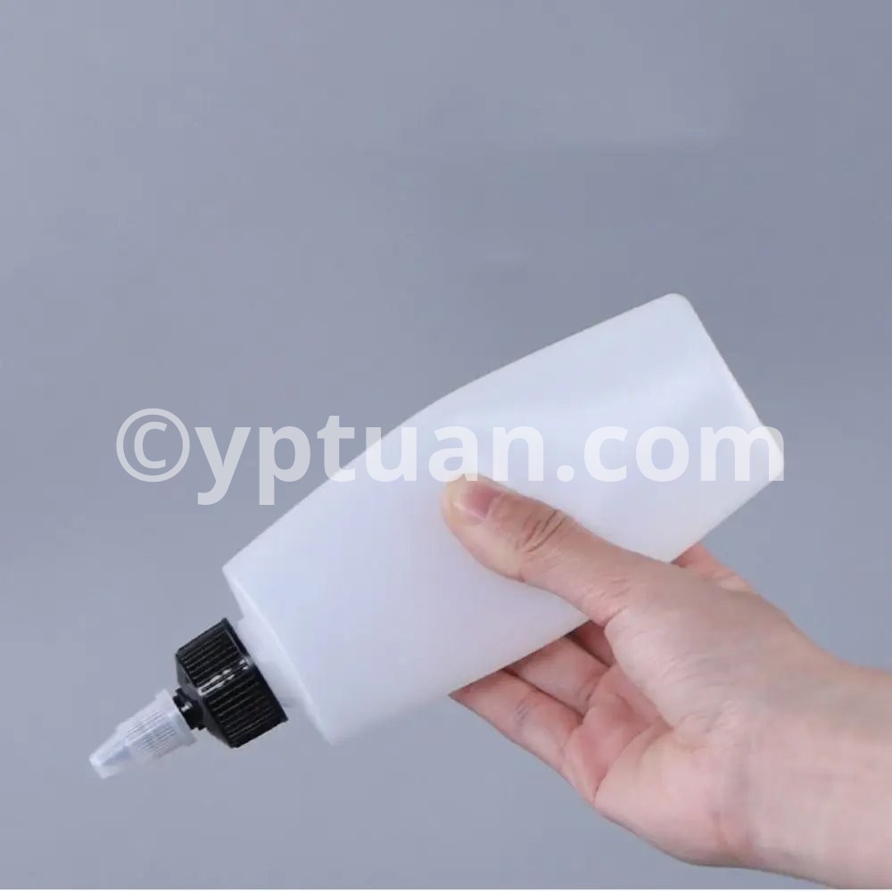 Material: PE Color: Transparent Capacity: 30ML/60ML/250ML/500ML Heat resistance: 80 ℃ (bottle body), 60 ℃ (bottle mouth) Packing:1PC Oil Bottle Features: Made from food grade PE material, BPA & PVC free, odor proof. Twist-on cap lids for easy controlling of the pouring speed. Clear, transparent body allows you to find what you need at a glance. Wide opening design, convenient to refill and clean. Best for soy sauce, oil, vinegar, dressing, cooking wine, alcohol, etc.
