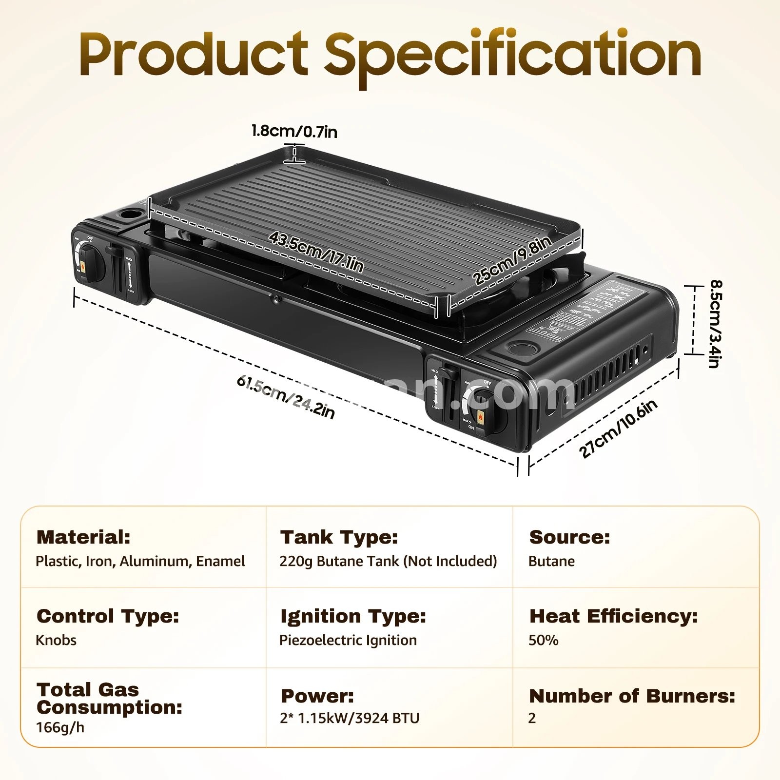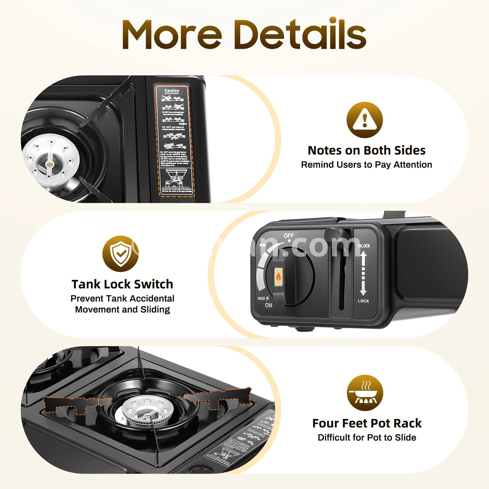 1.Please read the manual carefully and pay attention to the safety precautions inside. 2.Please allow the slight color difference caused by the shooting light and 1-3cm error due to manual measurement, and make sure you do not mind before ordering. 3.Please note that this product is only compatible with the 220-gram dedicated butane gas cylinder for card-type stoves. Do not use gas cylinders of other specifications or types to ensure safety and normal operation.