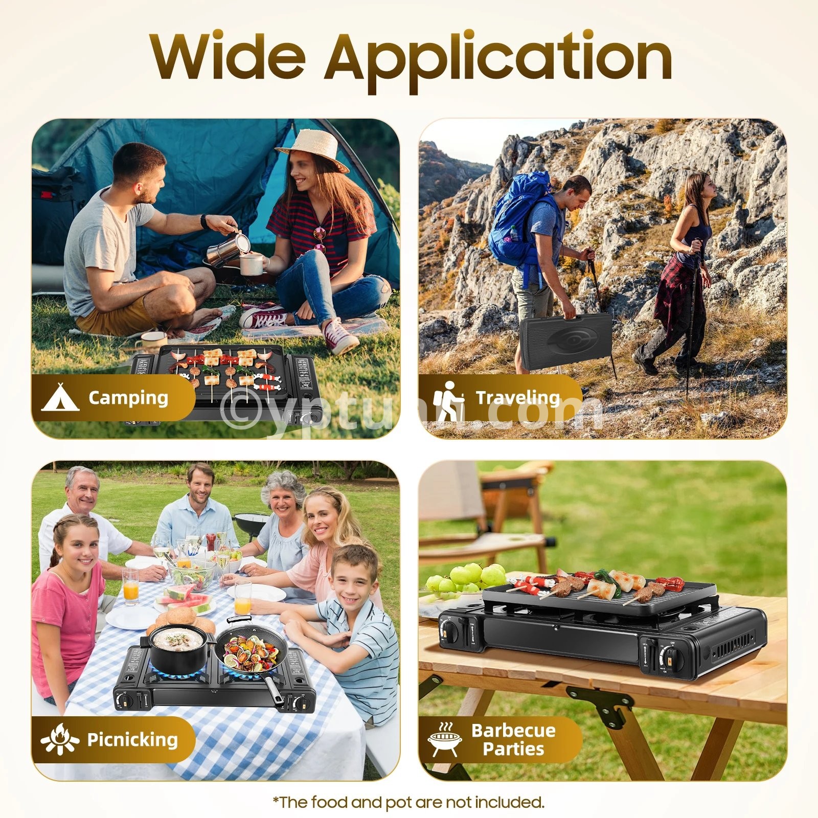 This portable camping stove with grill tray redefines the outdoor cooking experience with its outstanding performance, diverse functions, and user-friendly details, making every barbecue activity an unforgettable culinary journey. Whether it's the warm moments of family or friends gathering, it is an indispensable creator of delicious food, allowing love and food to blend in the embrace of nature.