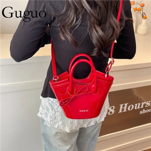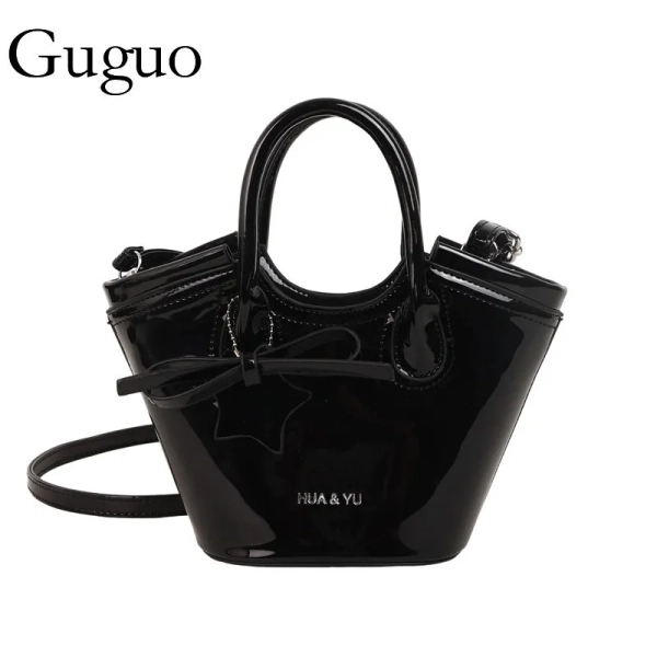 Guguo Designer Bag Handheld Basket Bag For Women 2025 New Fashion Patent Leather Versatile Crossbody Luxury Bag Bag High-end Stylish Bucket Bag