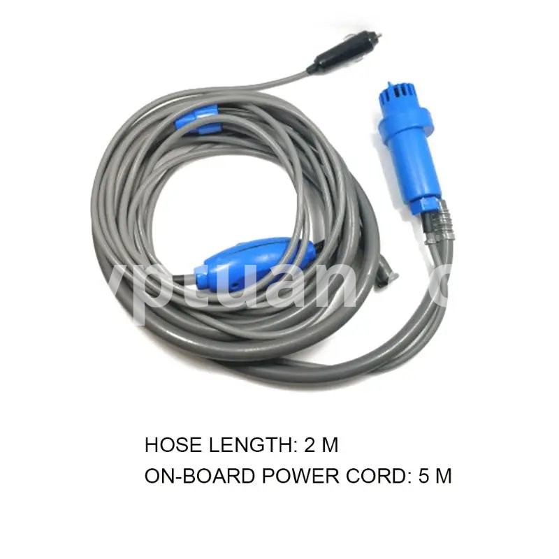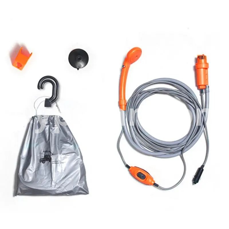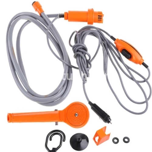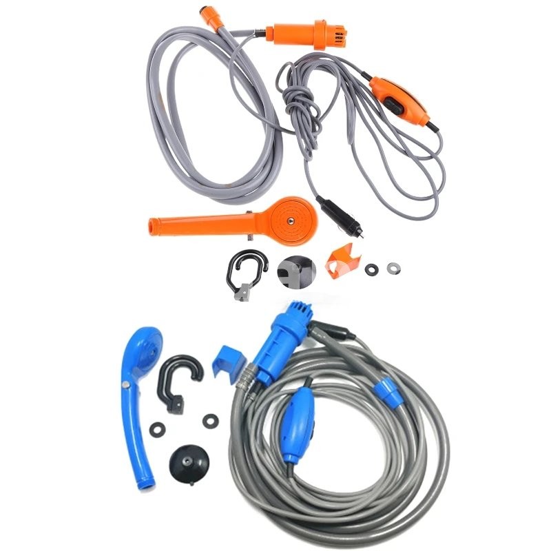 Outdoor Portable Shower Camping Rechargeable Battery Water For Travel Description: 1. Prepare a bucket of water in advance (the water temperature should not 45 degrees), put the into the bucket, and plug the power plug into the car to to the 12V cigarette 2. The easy-to-carry simple rain shower has a wide of uses, such as outdoor car wash, shower, and other convenient tools. 3. Direct 12V vehicle power supply drives micro suitable for self-driving outdoor camping shower, temporary bath after sea swimming Specifications: Product parameters: 12V Current: 3A Current: 35-60W Product weight: 0.82kg Hose length: 2M/78.7in, Car power cable: 5M/196.9in Packing requirements: Fiber bag packaging, waterproof sealing, saving volume and weight. Color: orange or blue Note: Item color displayed in photos may be showing slightly different on your computer since monitors are not calibrated same. Please allow 1-3mm slight deviation due to manual measurement. Thank you! Package include: 1 * Sprinkler hook 1 * Window suction cup 1 * Shower 1 * Hook up 1 * Storage bag