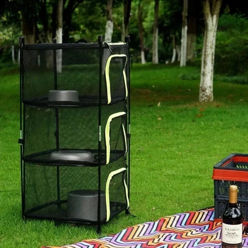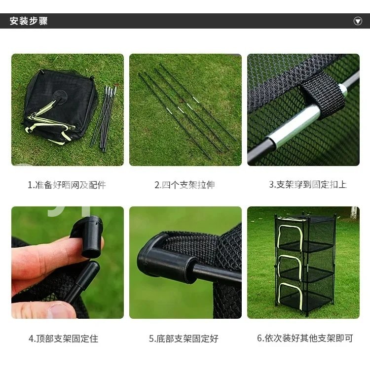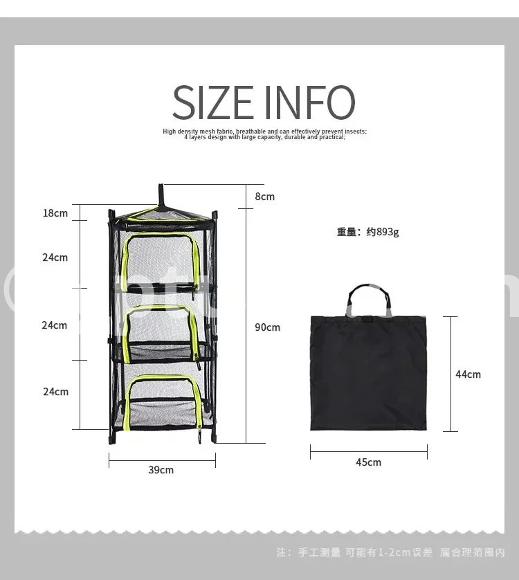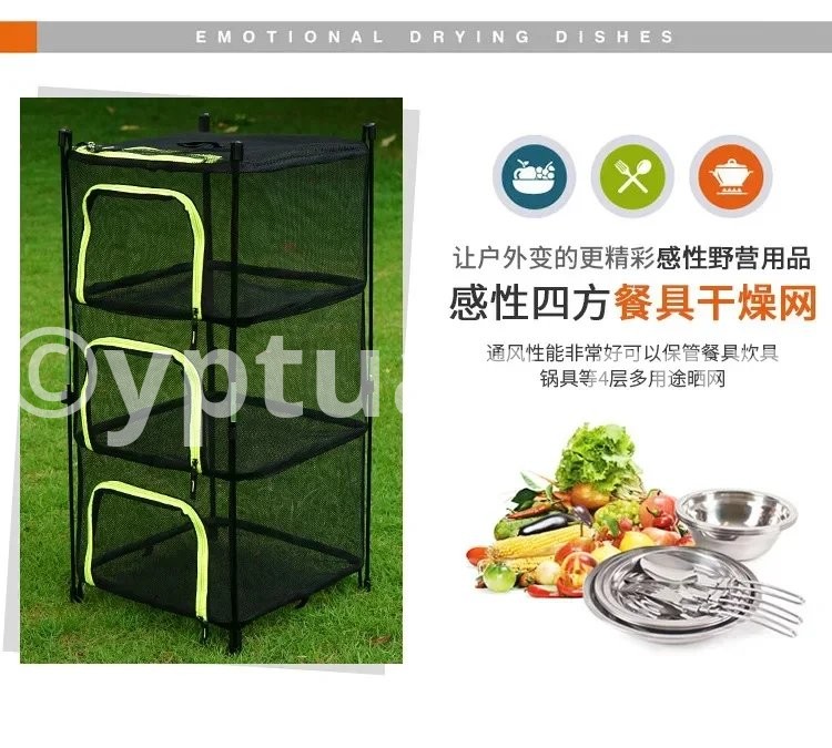 Outdoor Folding Drying Net Four Layer Storage Basket Camping Drying Fish Drying Net Frame Hanging Basket Drying Frame Net Frame